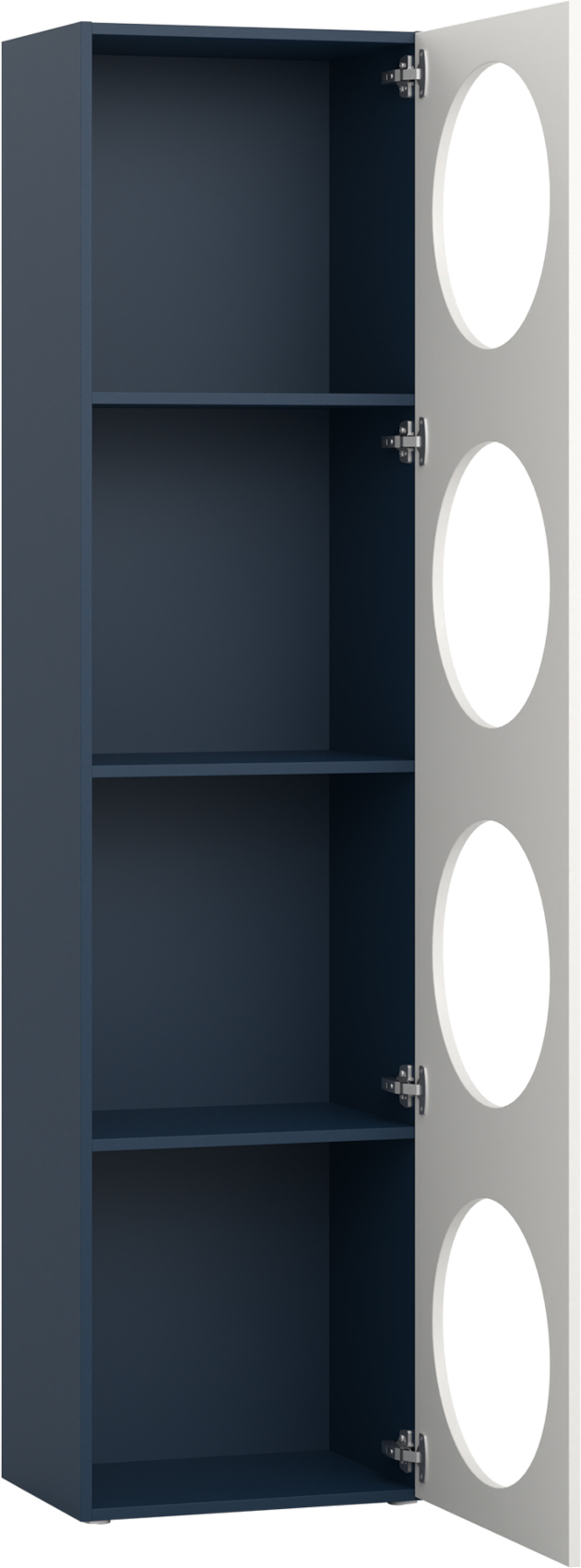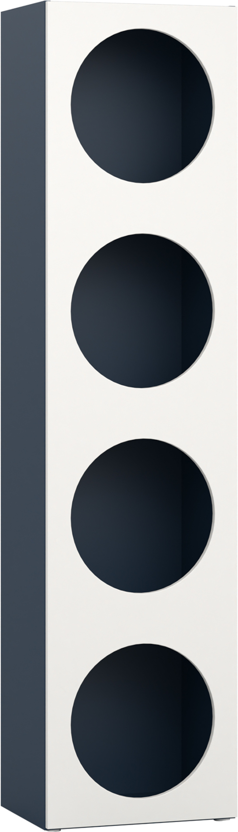 Úzký regál Reli 7 vás zaujme svým jedinečným designem s moderními prvky v alabastrově bílém odstínu v kombinaci s barvou dle vašeho výběru. Je vyroben z kvalitního lamina o síle 16 mm, která vám zaručí odolnost vůči poškození. Můžete si vybrat ze 3 odstínů - dub, indigo nebo šedá. Dvířka mají zabudovaná systém tichého dovírání.