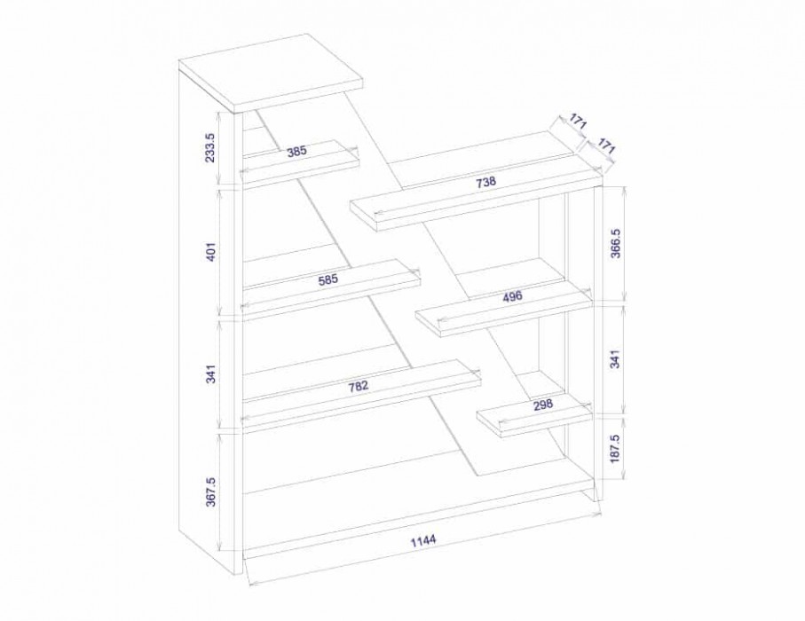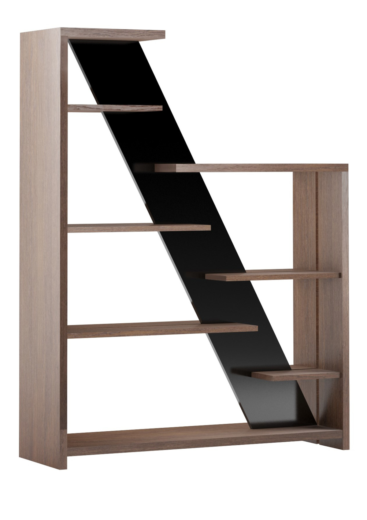 Volně stojící zkosený regál má 7 dřevěných černých polic, které můžete obohatit svými oblíbenými dekoracemi nebo knížkami.