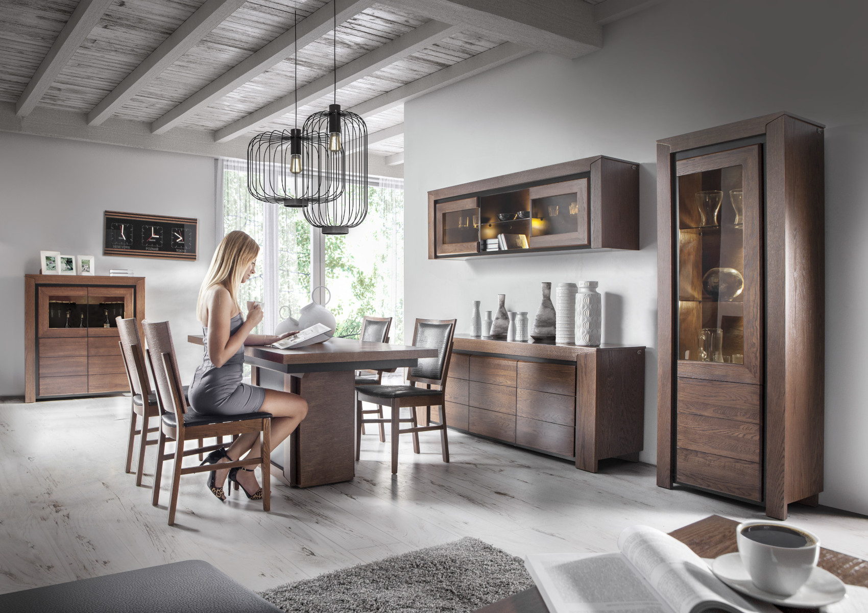 Luxusní regál Sempre je vyroben z přírodní dubové dýhy. Čtyřvrstvá technologie povrchového moření a lakování dává nábytku jedinečný design s výraznou strukturou lét masivního přírodního dřeva.