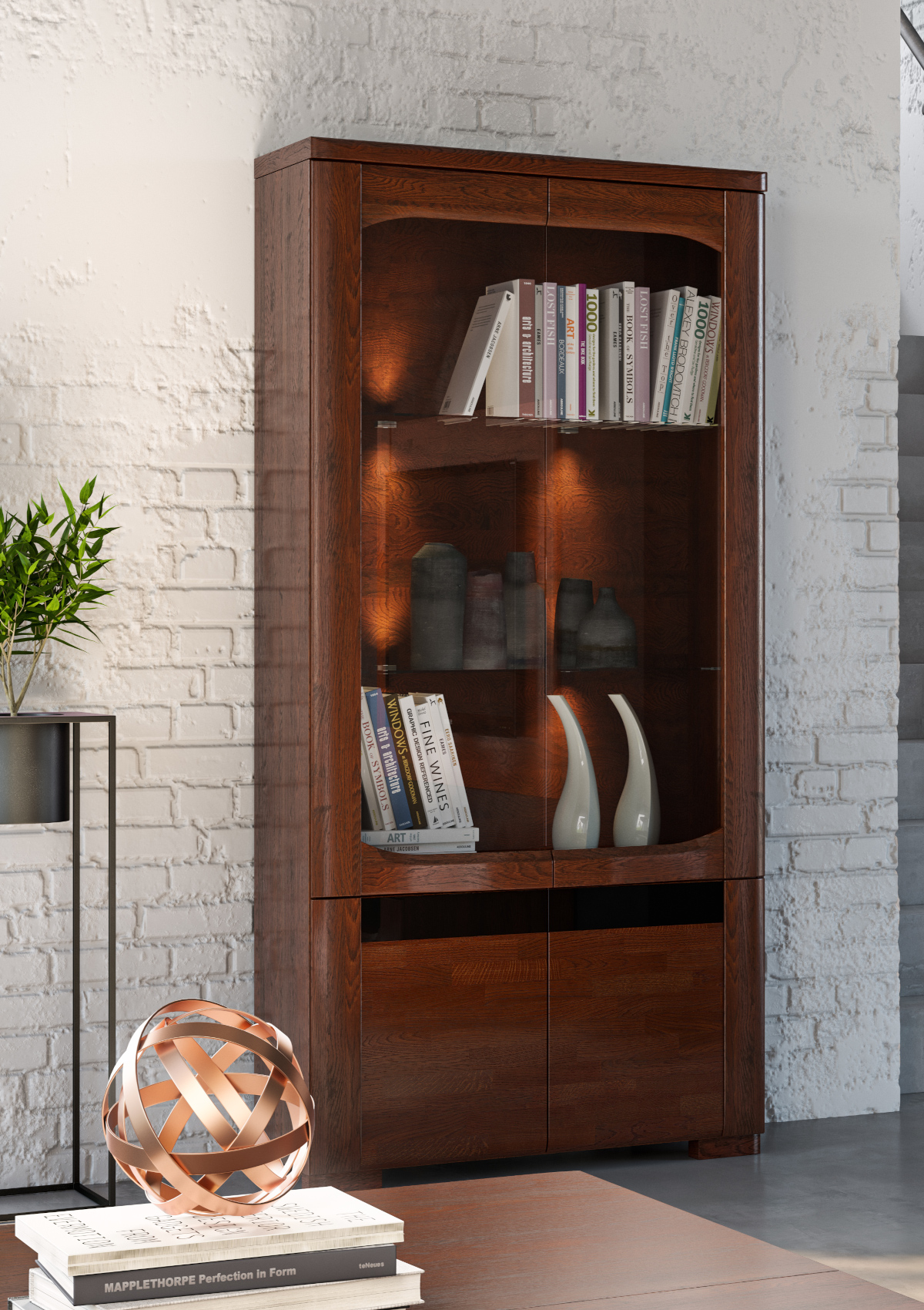 Luxusní barová komoda Riva je vyrobena z masivního dubového dřeva a přírodní dubové dýhy s černými prvky ze skla Lacobel. Vzhledem k použitému materiálu se jedná o velmi kvalitní a stabilní nábytek. Čtyřvrstvá technologie povrchového moření a lakování dává nábytku jedinečný design s výraznou strukturou lét masivního přírodního dřeva. Úchyty komody jsou z přírodního masivu.