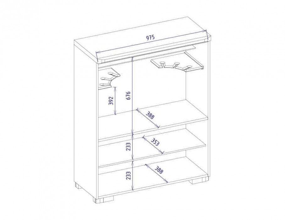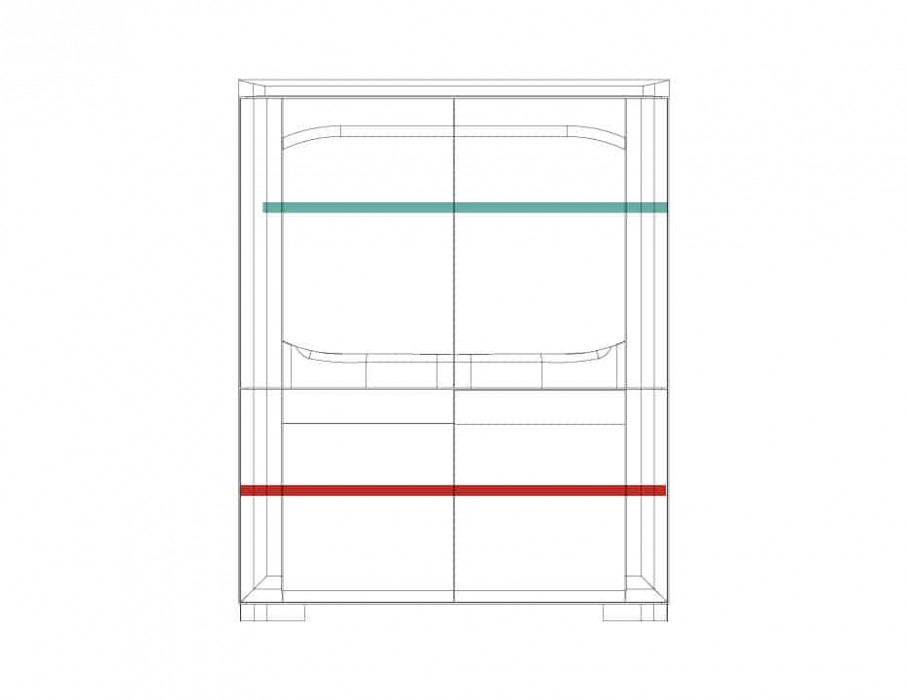Horní část komody je prosklená sklem Antisol, za kterým je vložena skleněná police s LED podsvícením, které dodá nábytku nádech luxusu a jedinečnosti. Součástí baru jsou 2 závěsy na sklenice. Spodní část má 2 plná dvířka s 1 lakovanou policí.