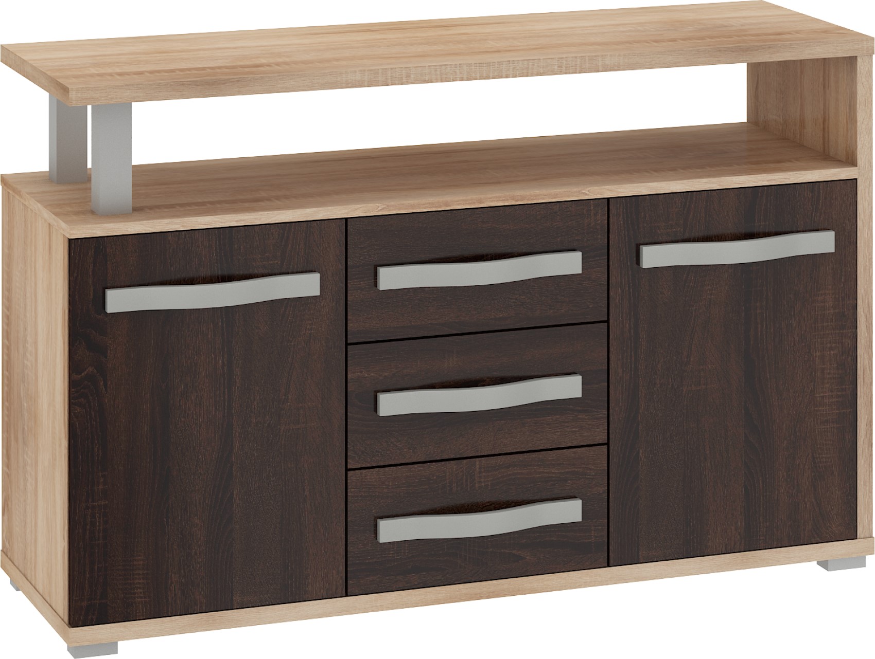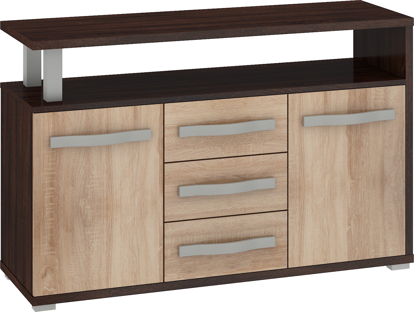 Komoda 2D3S Angel 05 se skvěle hodí do moderně zařízených interiérů. Zaujme vás svým neobvyklým avšak moderním designem a přírodním provedením. Je vyrobena z kvalitních lamino desek o síle 25 mm a 16 mm. Nábytek stojí na nízkých kovových nožkách. Nabízíme vám několik barevných variant. Zajímavý design barev dodává komodě ještě více na luxusu a nadčasovosti.