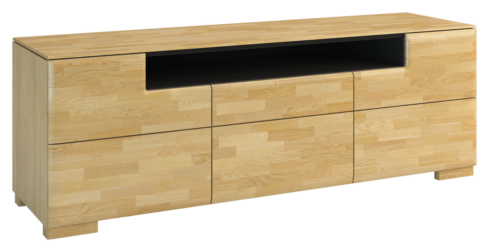 Komoda Rossano 3D vás zaujme svým moderním a jednoduchým designem. Je vyrobena z masivního dubového dřeva s černými lakovanými prvky. Kvalitní technologie lakování a moření dodává nábytku přirozený vzhled a zvýrazňuje jeho strukturu lét. Za příplatek si můžete zvolit horní desku s masivní dubovou hranou. Celkový systém má jednoduchý dotykový systém otevírání dvířek - Push to open. Máte na výběr ze 2 moření dřeva.