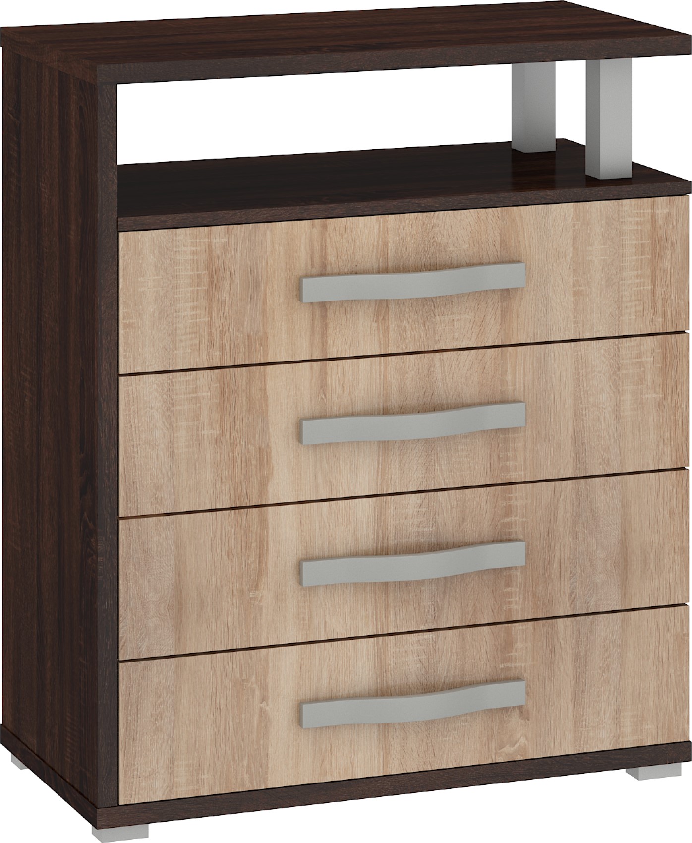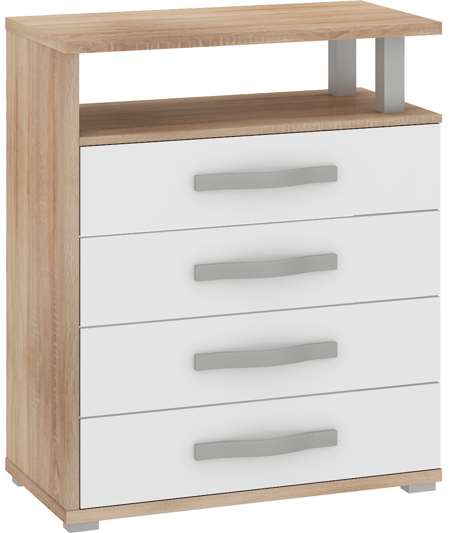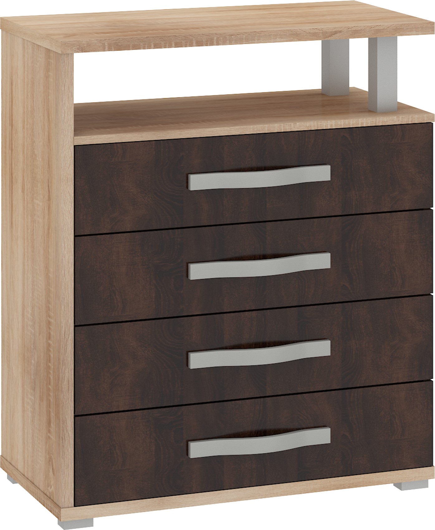 Komoda 4S Angel 06 se skvěle hodí do moderně zařízených interiérů. Zaujme vás svým neobvyklým avšak moderním designem a přírodním provedením. Je vyrobena z kvalitních lamino desek o síle 25 mm a 16 mm. Nábytek stojí na nízkých kovových nožkách. Nabízíme vám několik barevných variant. Zajímavý design barev dodává komodě ještě více na luxusu a nadčasovosti.