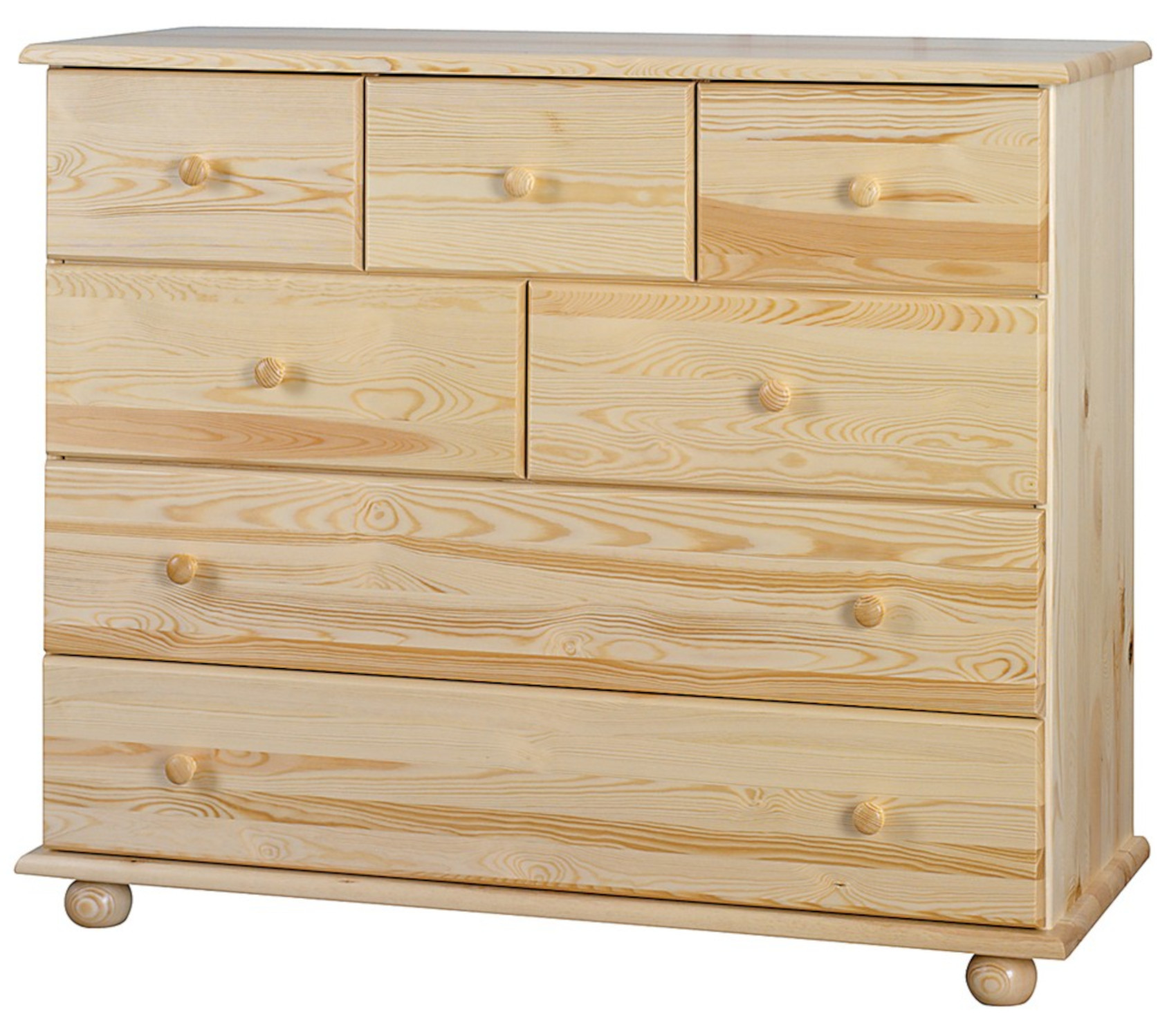 Komoda Anna vás zaujme svým jednoduchým přírodním designem s viditelnou strukturou dřevěných lét. Je vyrobena z masivního borovicového dřeva, které vám zaručí kvalitu, odolnost a stabilitu. Součástí jsou dřevěné úchyty ve tvaru knoflíku. Jedinečným prvkem jsou nízké kulaté nožky, které dodají nábytku nádech elegance a provzdušní váš interiér. Na výběr máte z několika variant odstínů moření.