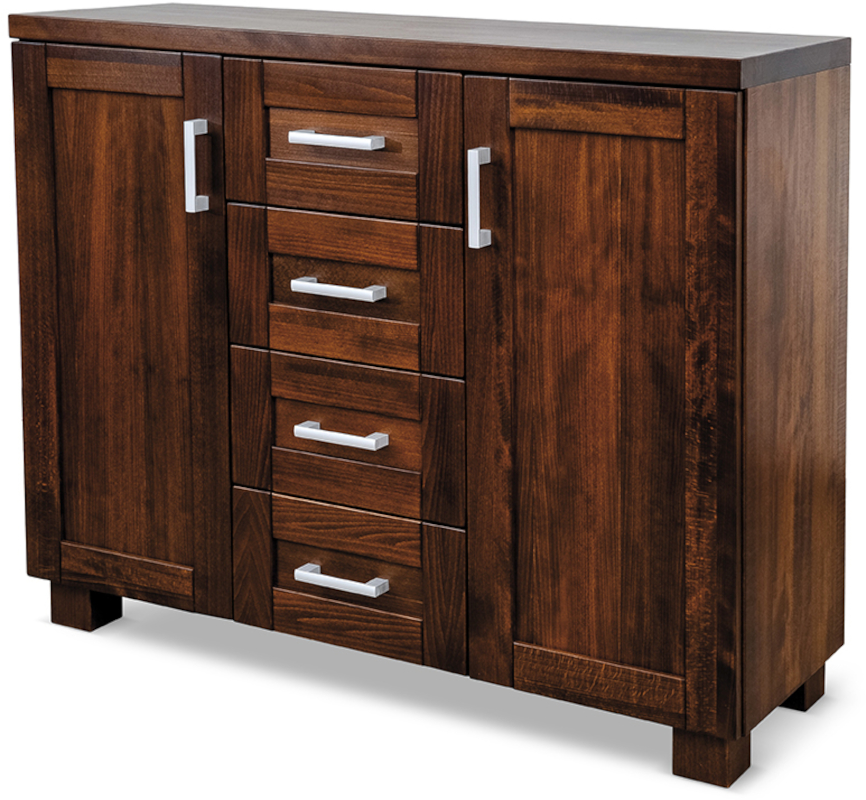 Moderní komoda C 120 vás zaujme svým jednoduchým a elegantním designem. Je vyrobena z přírodního masivního dřeva o tloušťce 4 cm, které vám zaručí kvalitu, odolnost a stabilitu. Součástí komody jsou 4 prostorné zásuvky na kovových pojezdech Hettich a 2 krajní dvířka.