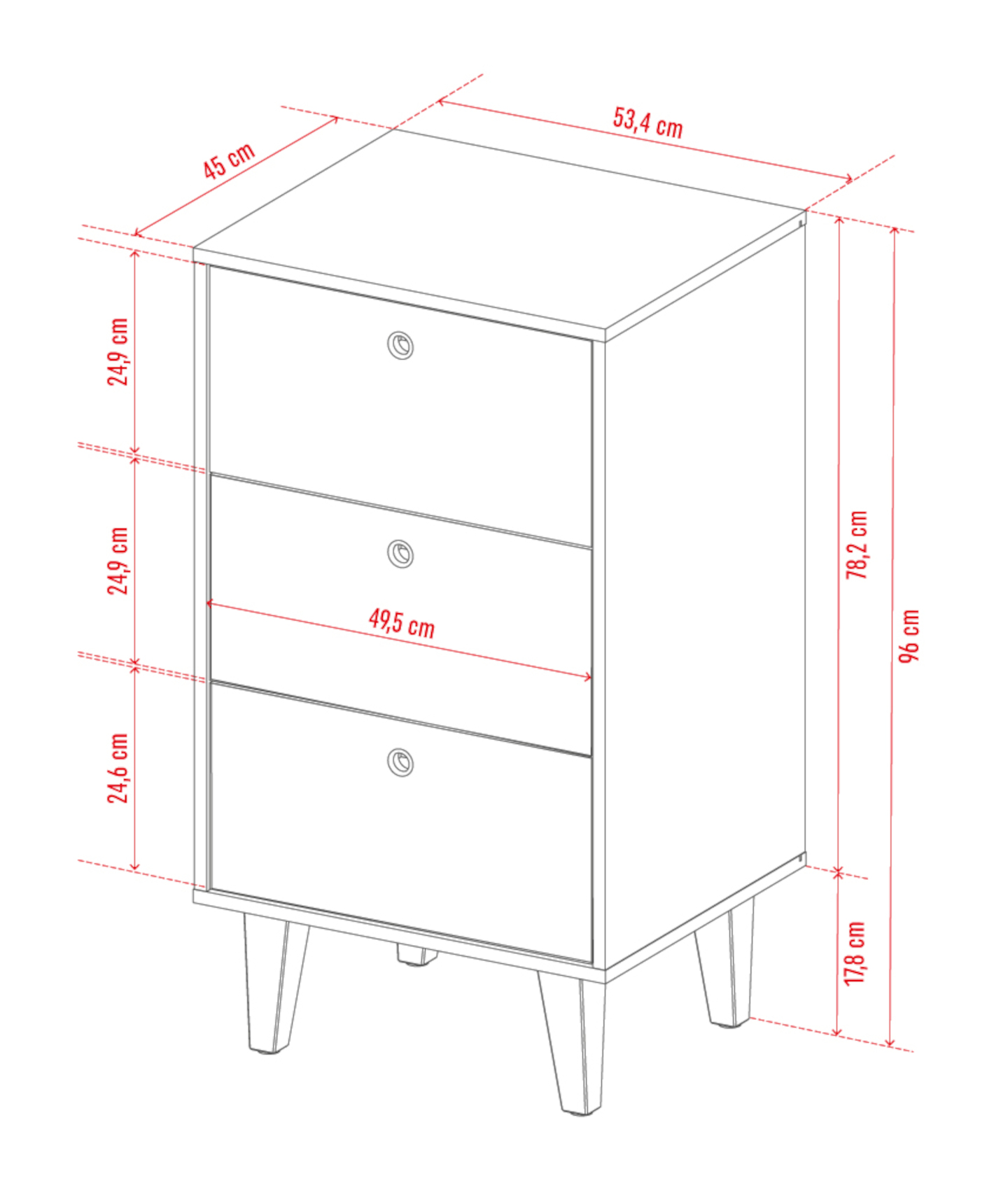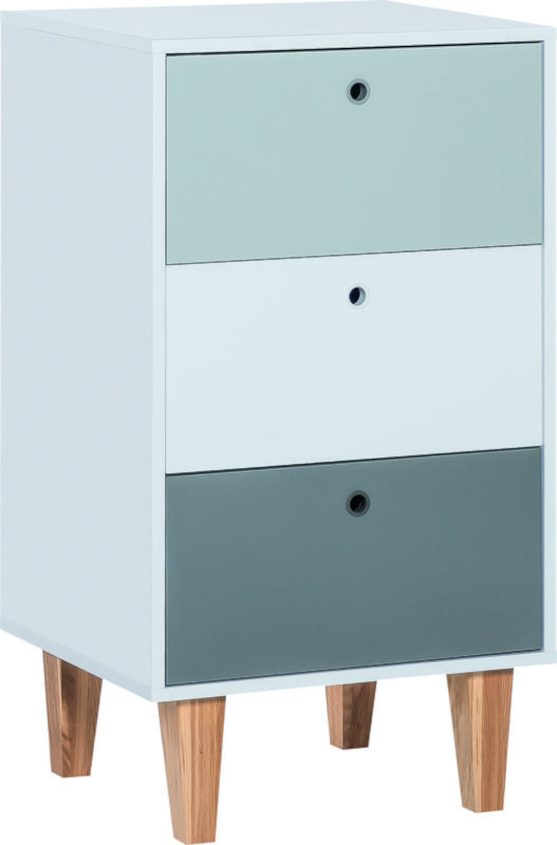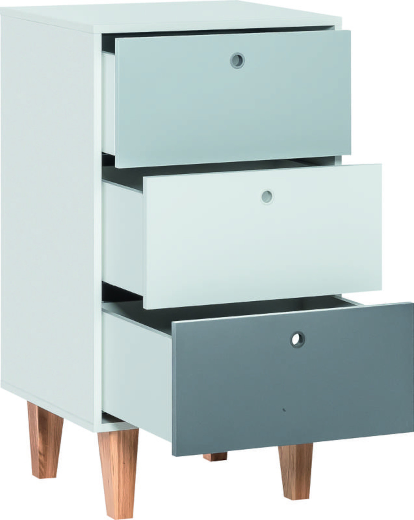 Moderní komoda Concept se zásuvkami vás zaujme svým jednoduchým designem. Je vyrobena z kvalitního a odolného lamina o tloušťce 16 mm a nožky o výšce 18 cm jsou z lakovaného dubového dřeva. Rukojetí jsou kulaté otvory se silikonovým povrchem. Dvířka i zásuvky v celém systému mají systém tichého dovírání.