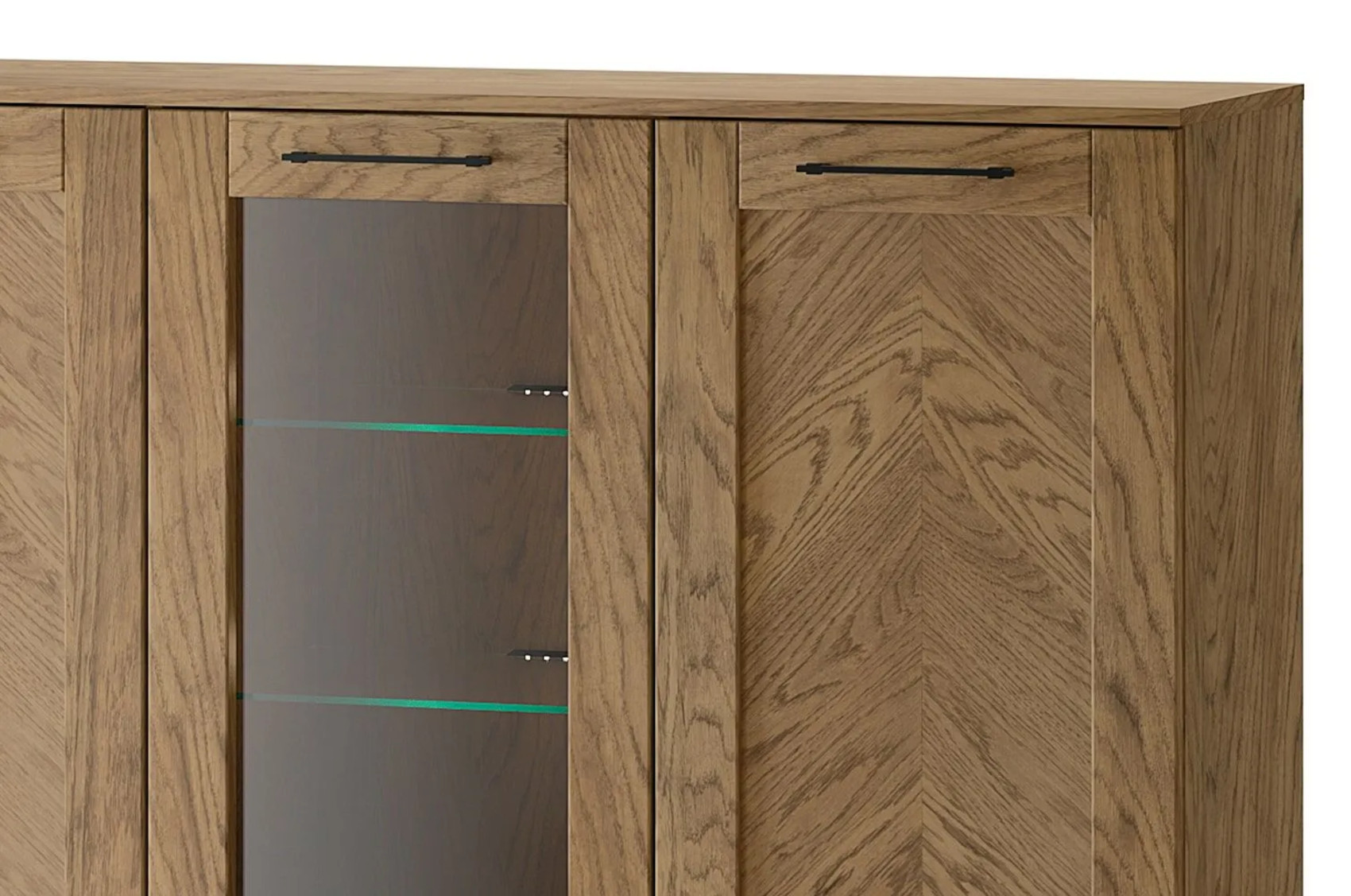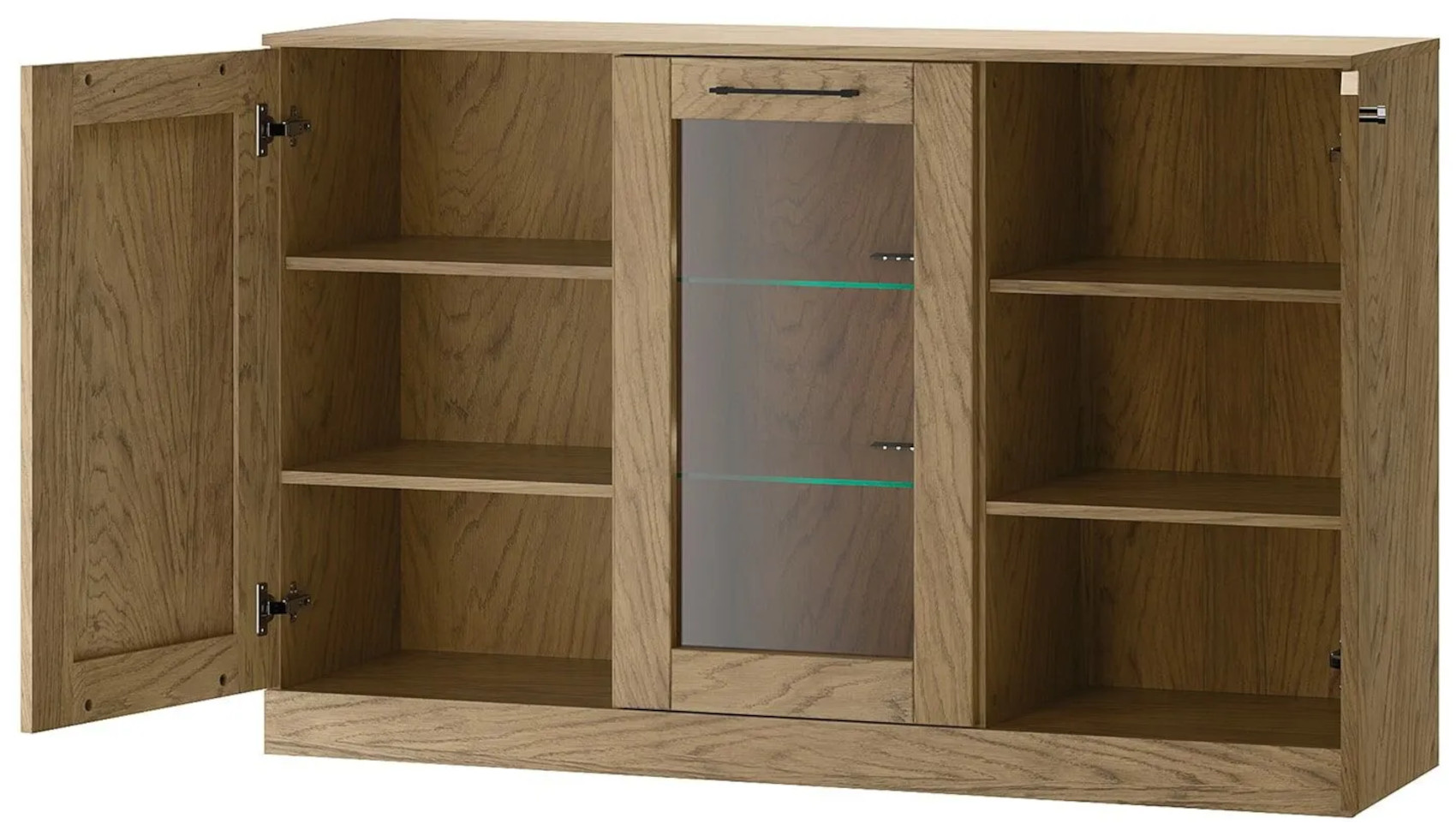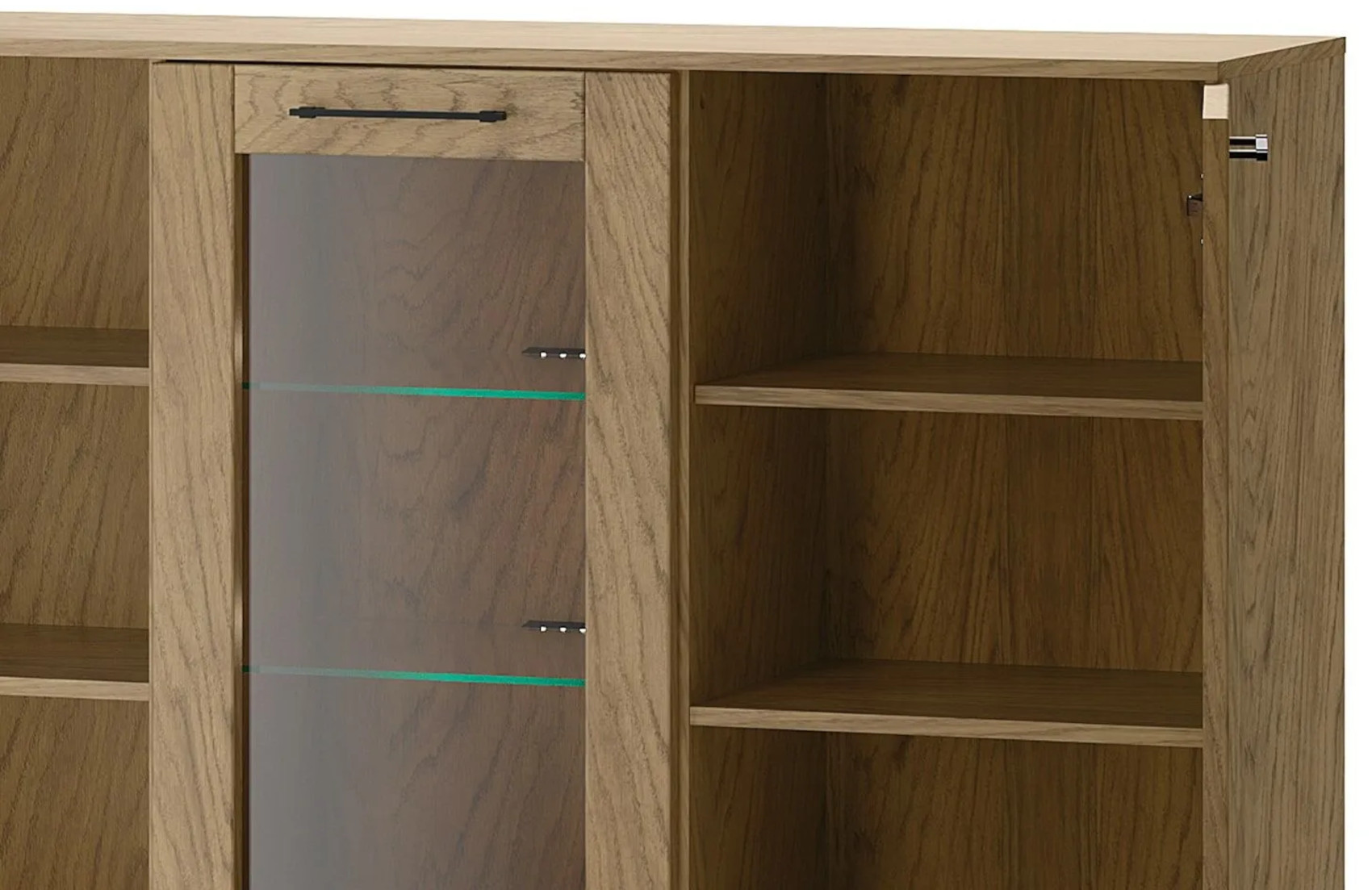 V ceně je zahrnuto LED osvětlení skleněných polic, které dodá nábytku nádech luxusu a navodí příjemnou večerní atmosféru.