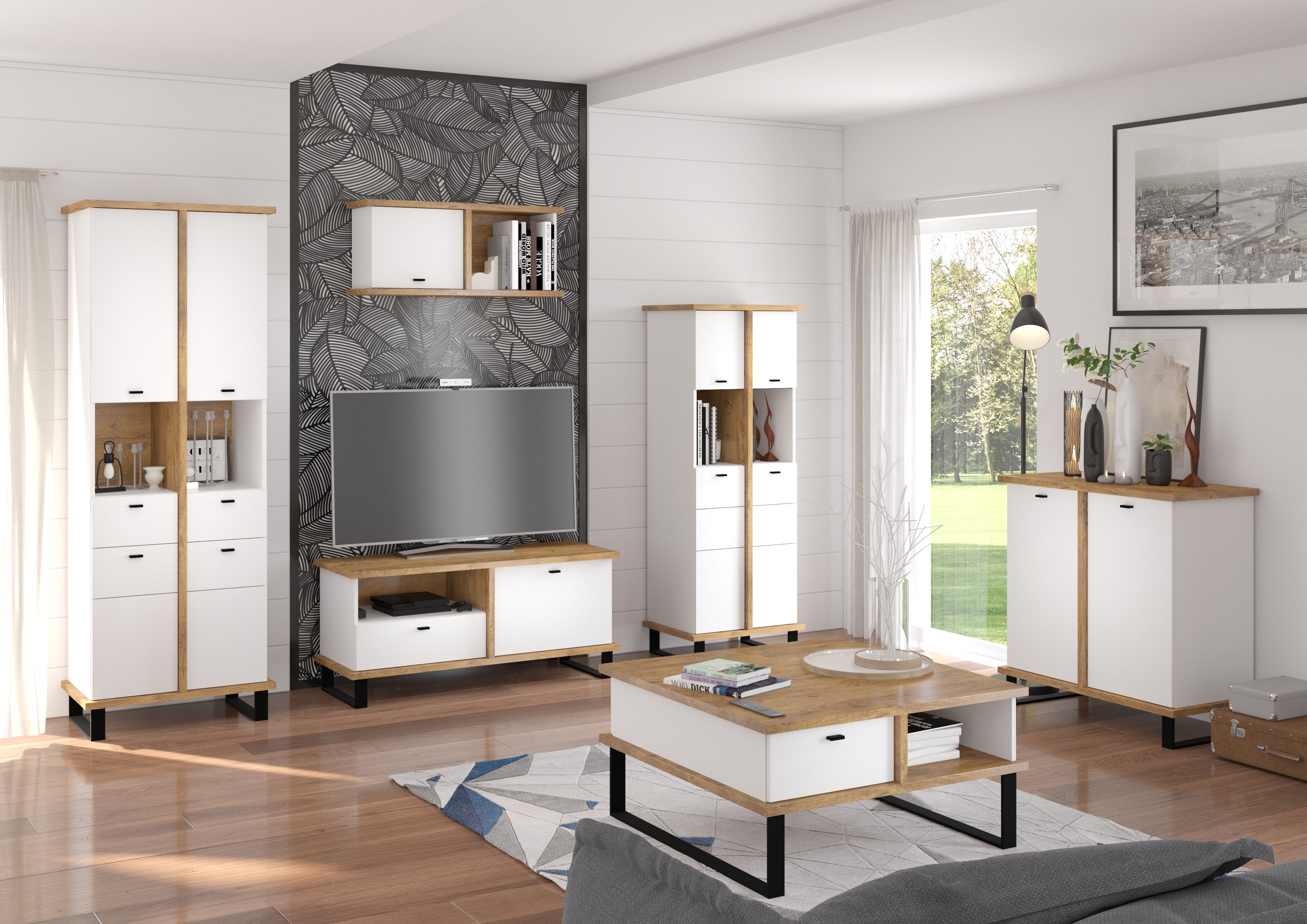 Vitríny mají kouřová skla, která ještě více zdůrazní originální vzhled systému. Černou barvou vynikají i úchyty, jež doplňují barevné kombinace reflektující moderní trendy v bydlení. S kolekcí Cross nemůžete šlápnout vedle!