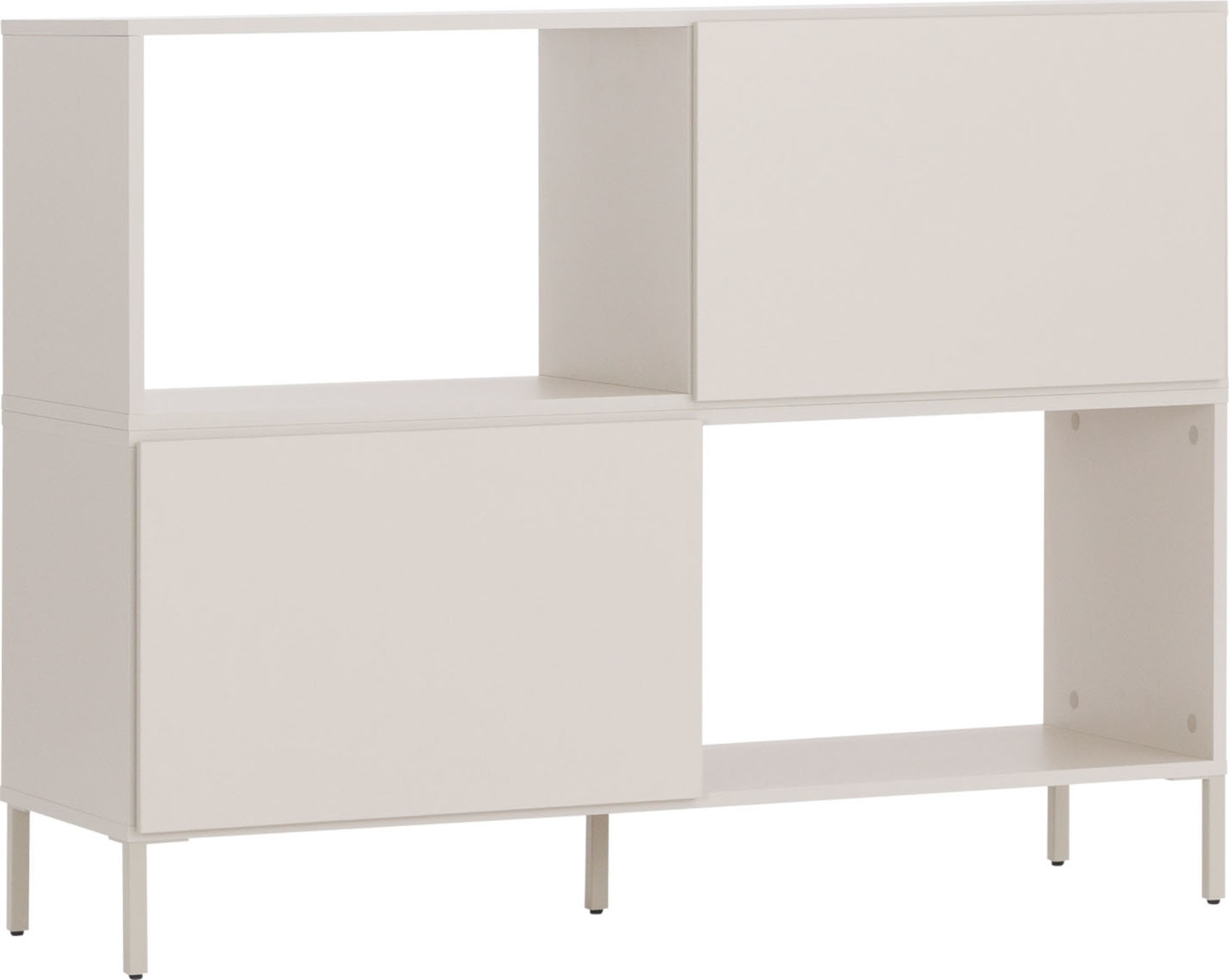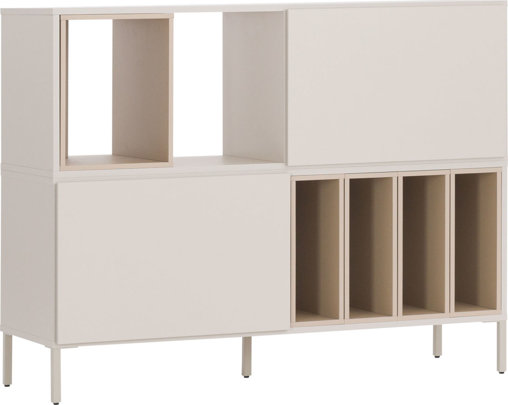 Součástí jsou 2 dvířka, která můžete nainstalovat na levou či pravou stranu. Vedle dvířek je otevřený prostor, kam můžete vložit malé či velké barevné skříňky v odstínu cava béžová, díky kterým vzniká mnohem více prostoru k vystavení vašich oblíbených knih, dekorací a rámečků s fotografiemi.