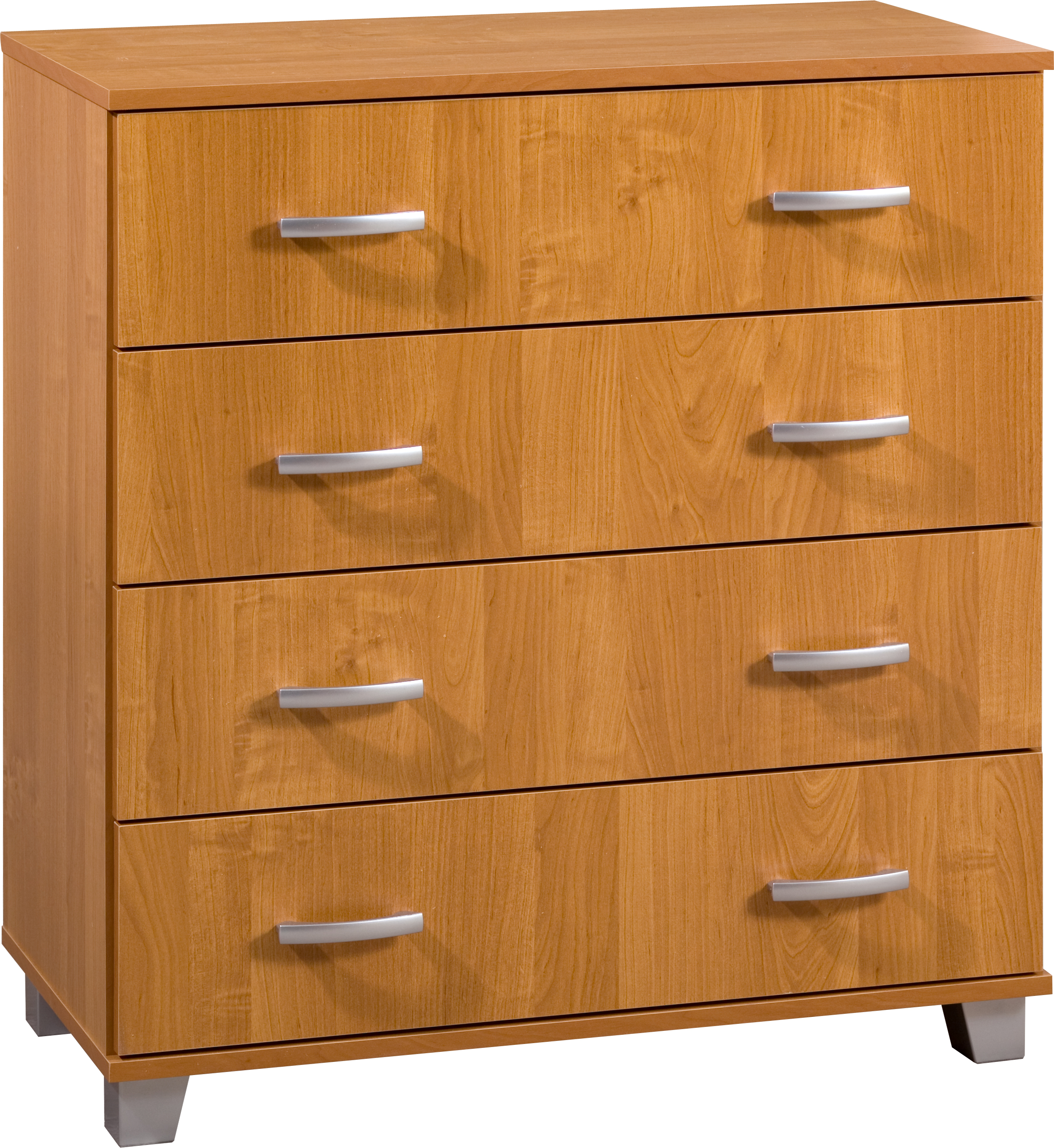 Čtyřzásuvková komoda klasického designu z lamina o síle 16 mm. Úchytky i nožky z tvrzeného plastu stříbrné barvy vkusně doplňují všechny dekory, ze kterých si můžete komodu vybrat. Zásuvky mají kovové pojezdy. Komoda KN-8044S je univerzální součást interiéru, kterou budete denně využívat.