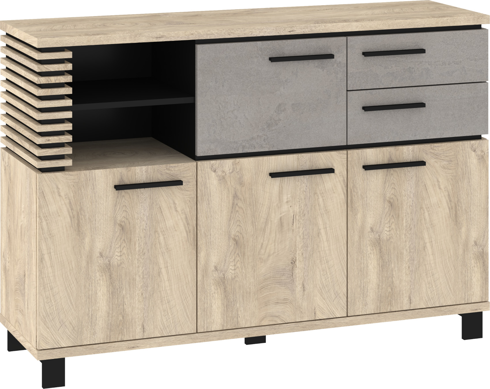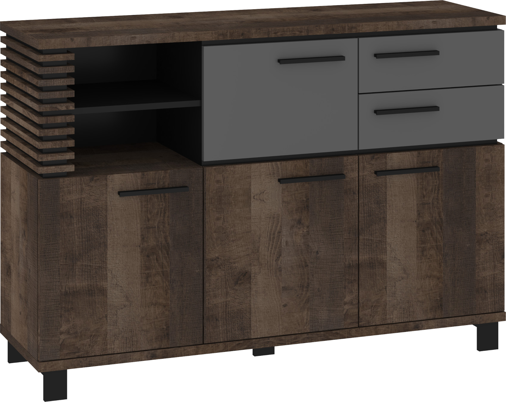 Komoda Lamir vás zaujme svým moderním elegantním designem s luxusními přírodními detaily. Je vyrobena z kvalitních lamino desek o síle 16 mm a 25 mm. Desky mají ABS hranění, které zvyšuje odolnost pro odštípnutí hran. Součástí zásuvek a dvířek jsou jednoduché kovové úchyty a zároveň mají zabudovaný systém tichého dovírání. Nábytek stojí na 8 cm nožkách, které provzdušní váš interiér. Nabízíme vám několik barevných variant.