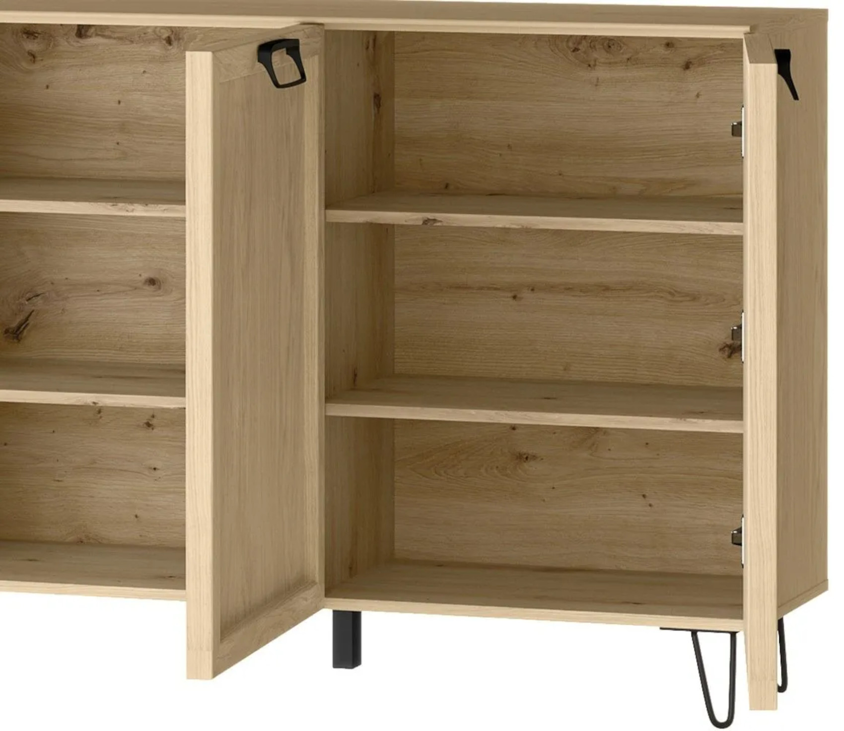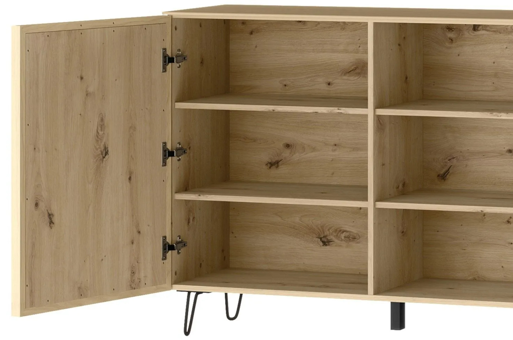 Komoda Limbo 47 vás zaujme svým přírodním designem s viditelnou strukturou dřevěných lét. Přední dvířka, se systémem tichého dovírání, jsou vyrobena z masivního dubového dřeva a korpus z přírodní dubové dýhy, která je potažena fólií. Součástí komody jsou kovové úchyty a nožky v odstínu černý mat, které dodají nábytku nádech elegance a provzdušní váš celkový prostor.