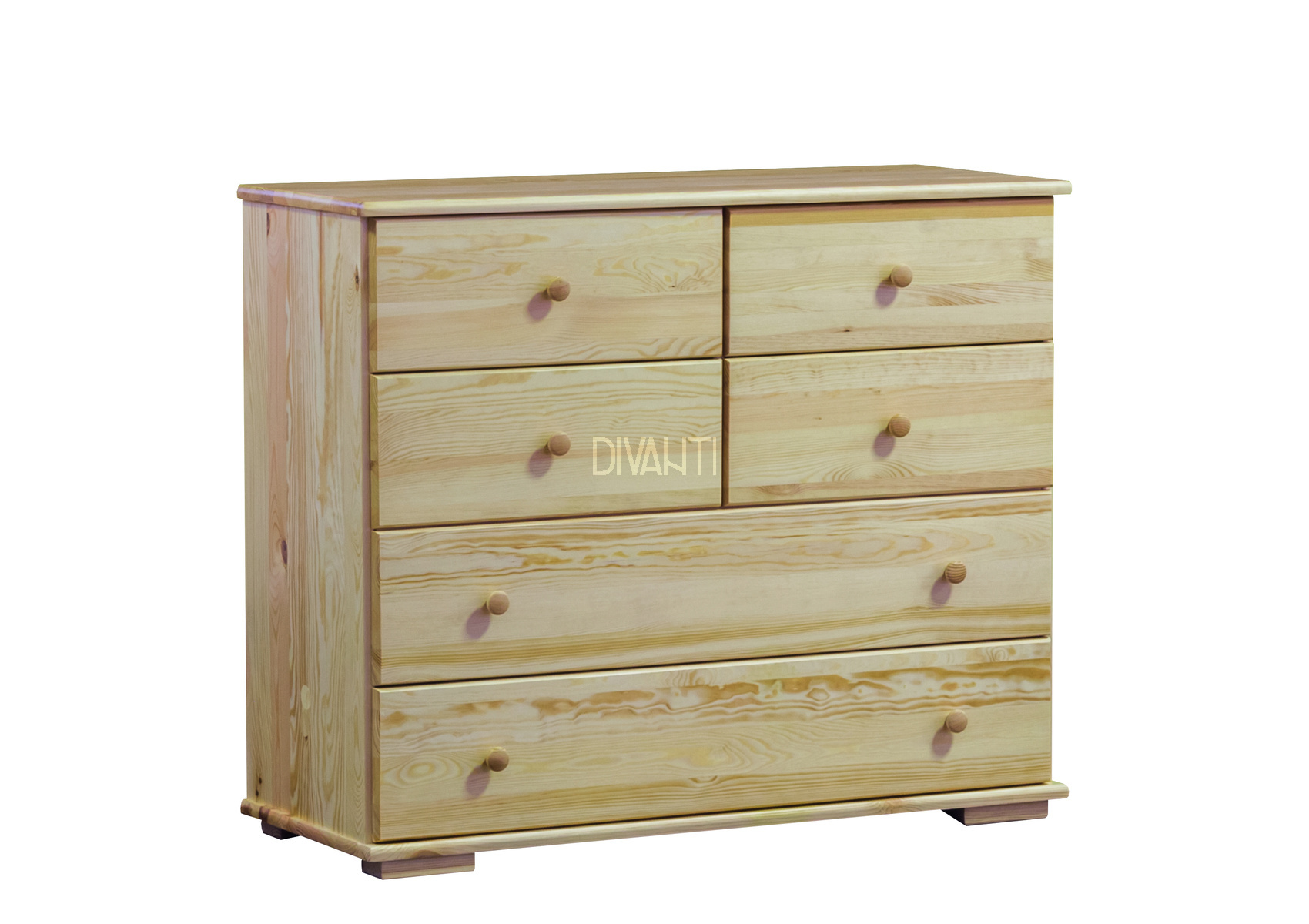 Komoda Modern VII vás zaujme svým jednoduchým přírodním designem s viditelnou strukturou lét. Je vyrobena z masivního borovicového dřeva, které vám zaručí kvalitu, odolnost a stabilitu. Součástí jsou dřevěné úchyty ve tvaru knoflíku. Komoda stojí na nízkých nožkách, které dodají nádech elegance. Na výběr máte z několika odstínu moření dřeva.