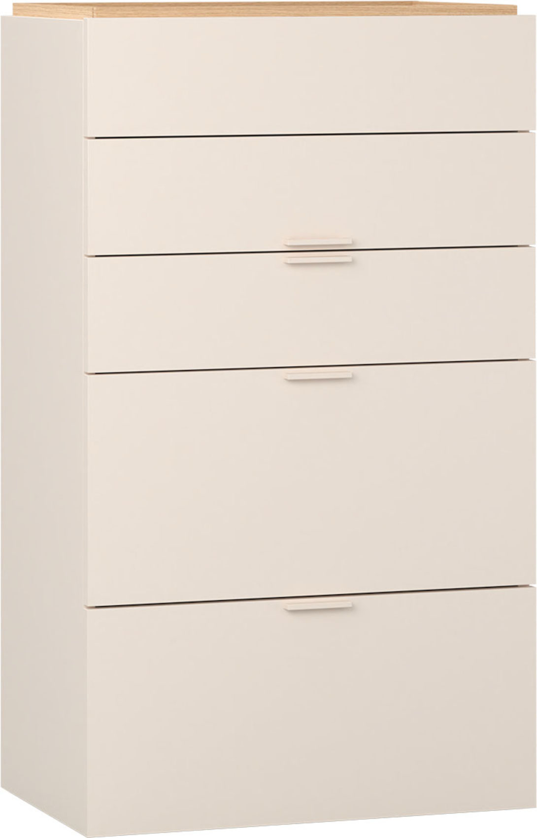 Komoda se zásuvkami 4You vás zaujme svým moderní designem v jasném odstínu v kombinaci s přírodním dubem. Je vyrobena z kvalitního lamina o síle 16 mm, které je odolné vůči poškrábání a nečistotám. Zásuvky mají zabudovaný systém tichého dovírání. V naší nabídce naleznete 2 odstíny - bílá a písková béžová.