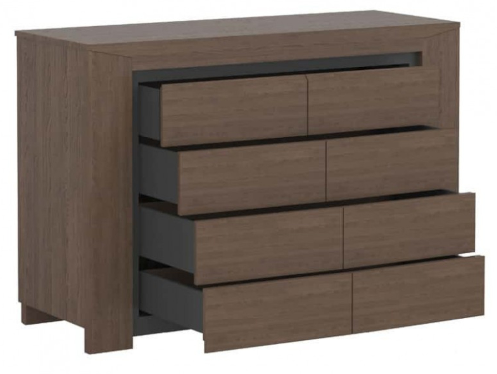 Komoda má 4 zásuvky na kovových pojezdech s jednoduchým dotykovým systémem otevírání Push to open.