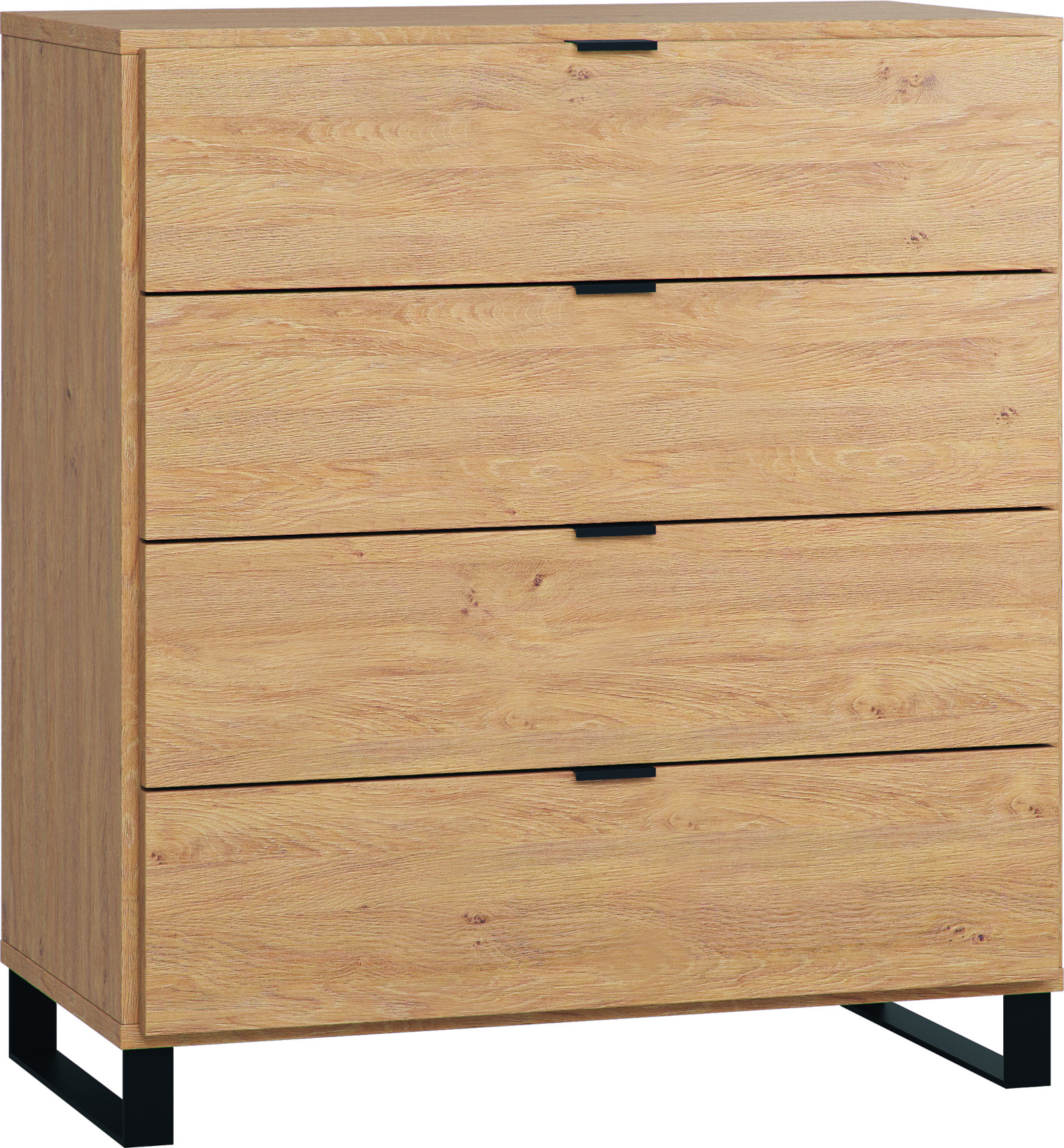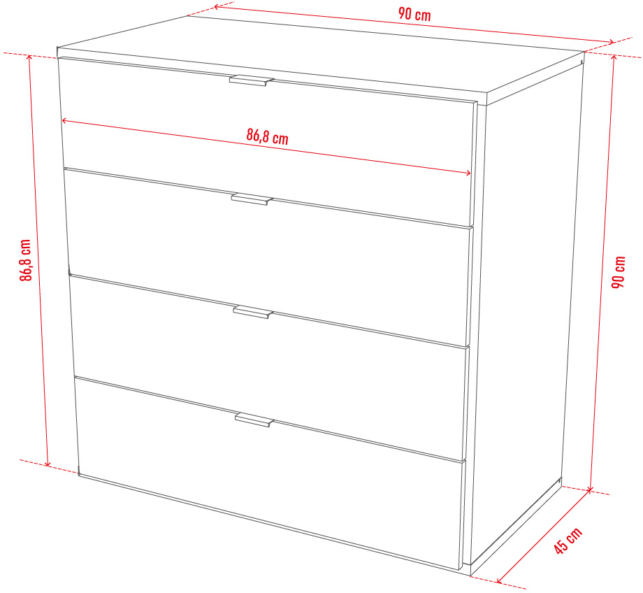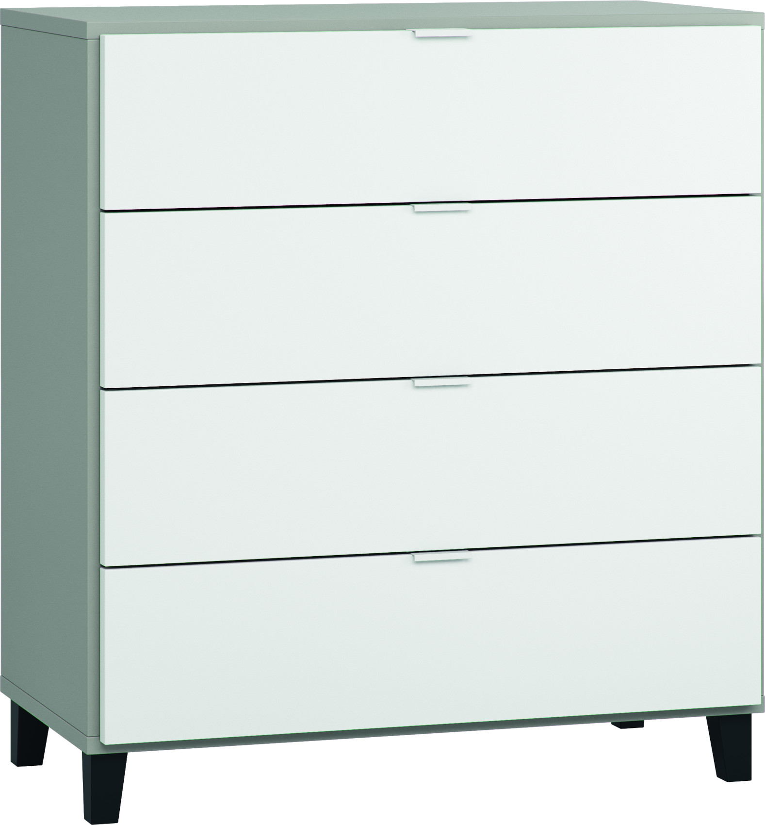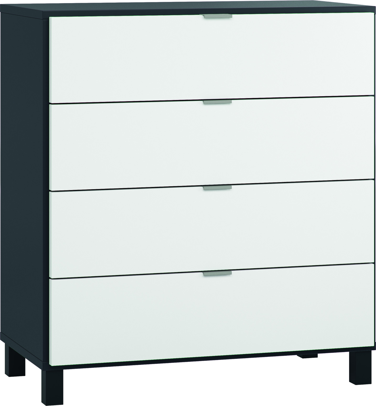Součástí komody jsou 4 zásuvky na kovových pojezdech. V horní zásuvce je LED osvětlení s pohybovým senzorem, které se rozsvítí při jejím otevření.