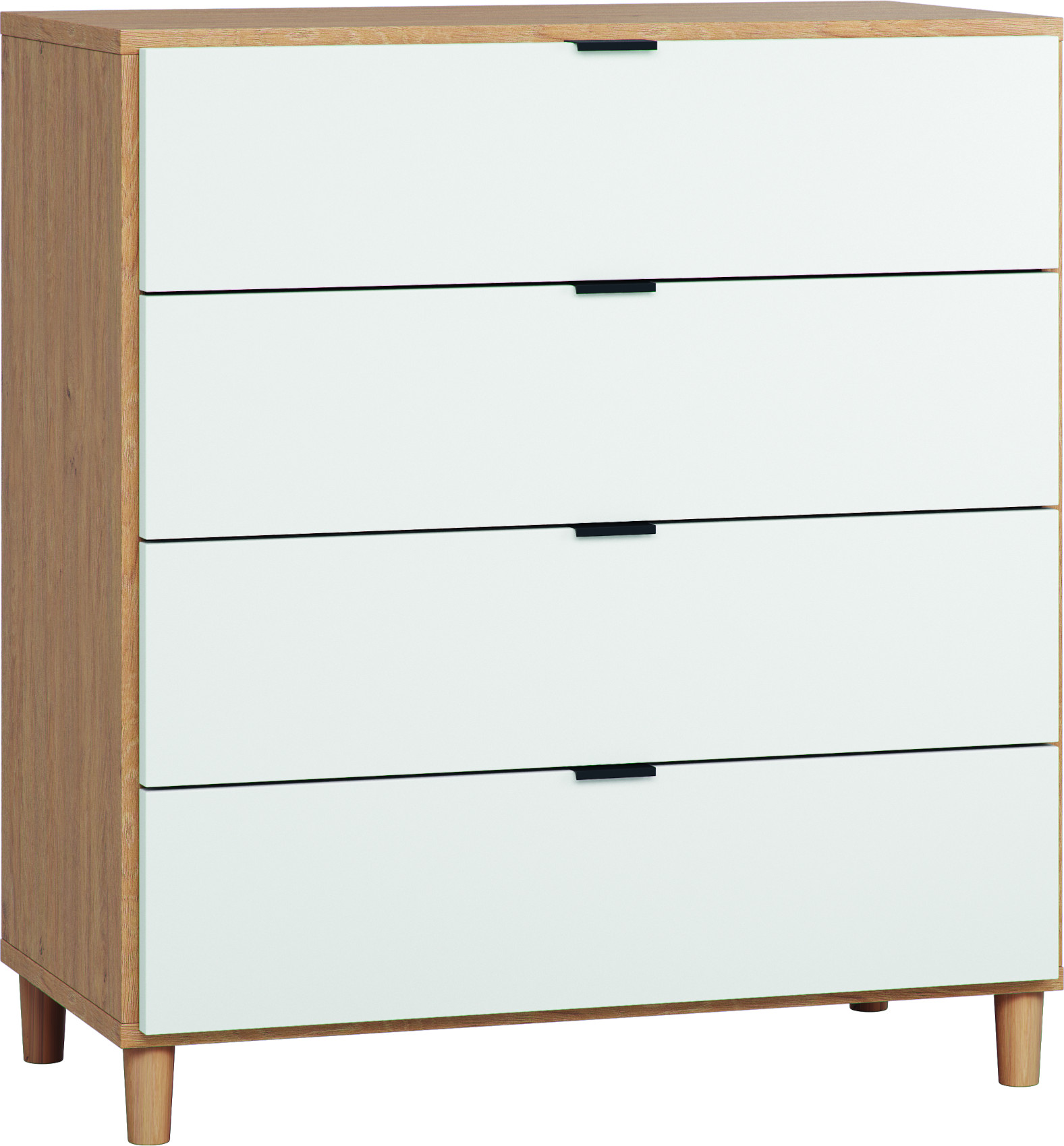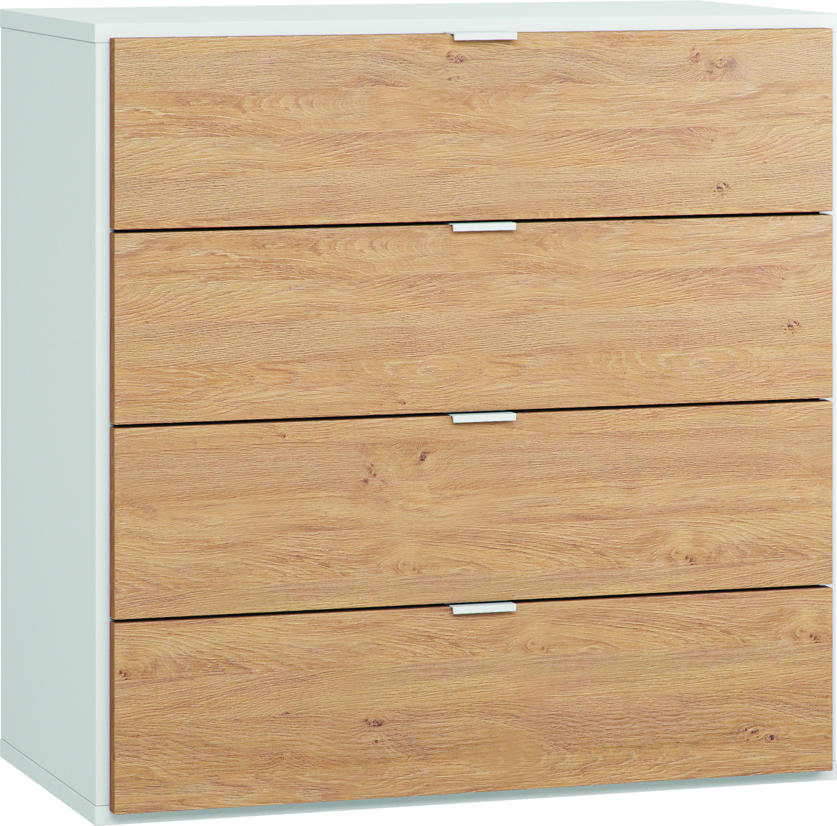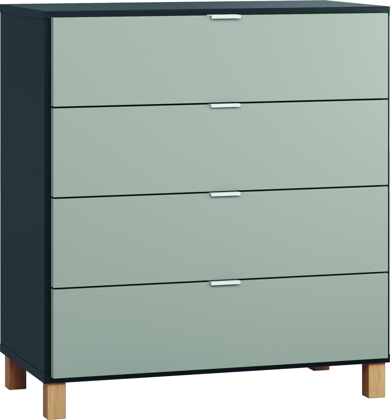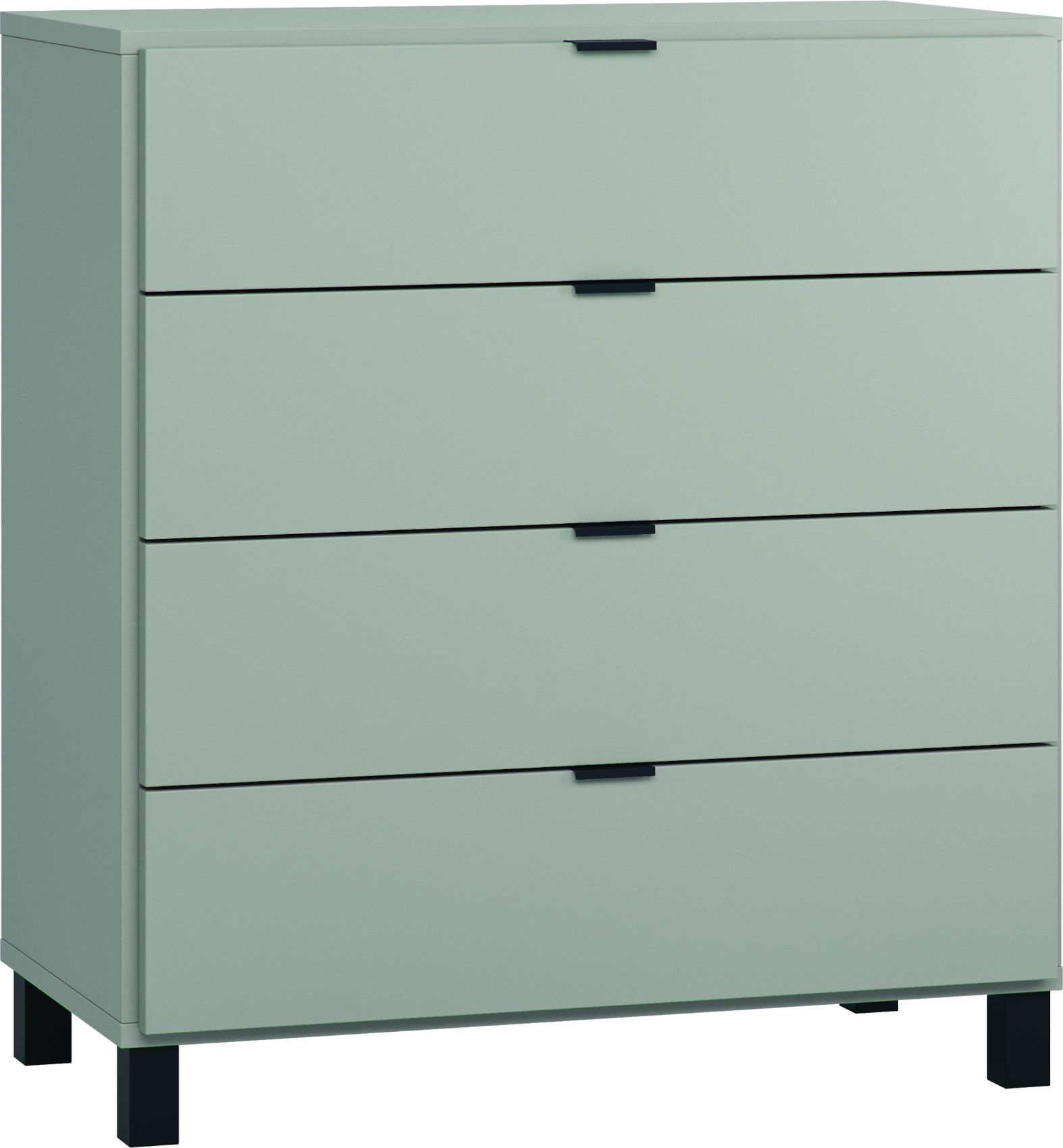 Součástí komody jsou 4 zásuvky na kovových pojezdech. V horní zásuvce je LED osvětlení s pohybovým senzorem, které se rozsvítí při jejím otevření.