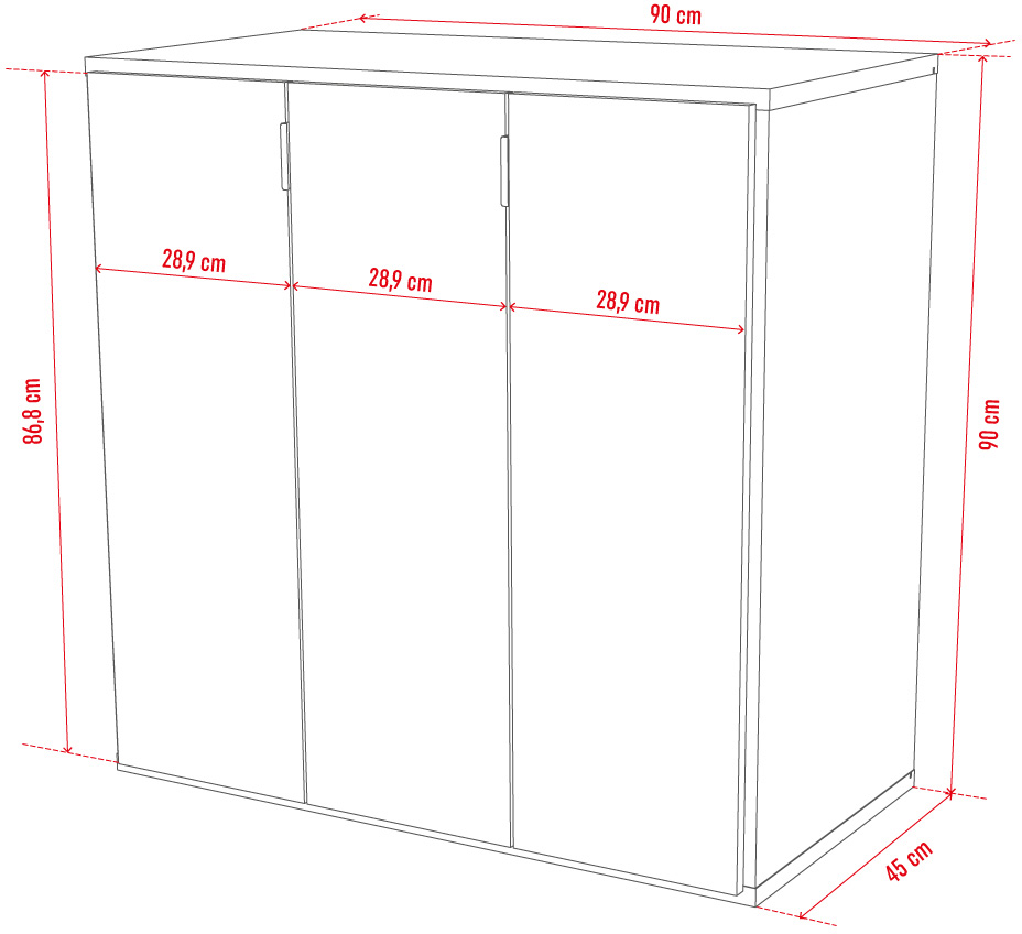Třídveřová komoda Simple vás zaujme svým jednoduchým a zároveň luxusním designem. Tělo i přední části jsou vyrobeny z kvalitního a odolného lamina. Úchyty jsou z kovu a nohy z masivního dubového dřeva, bukového dřeva nebo kovu - je pouze na vás, jaký typ nožek si zvolíte. Dvířka mají zabudovaný systém tichého dovírání. Nábytek Simple je jedinečný tím, že si sami zvolíte jeho barevné provedení.