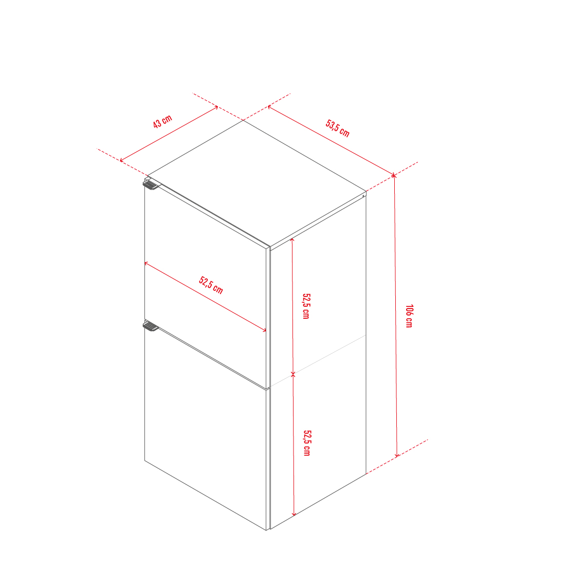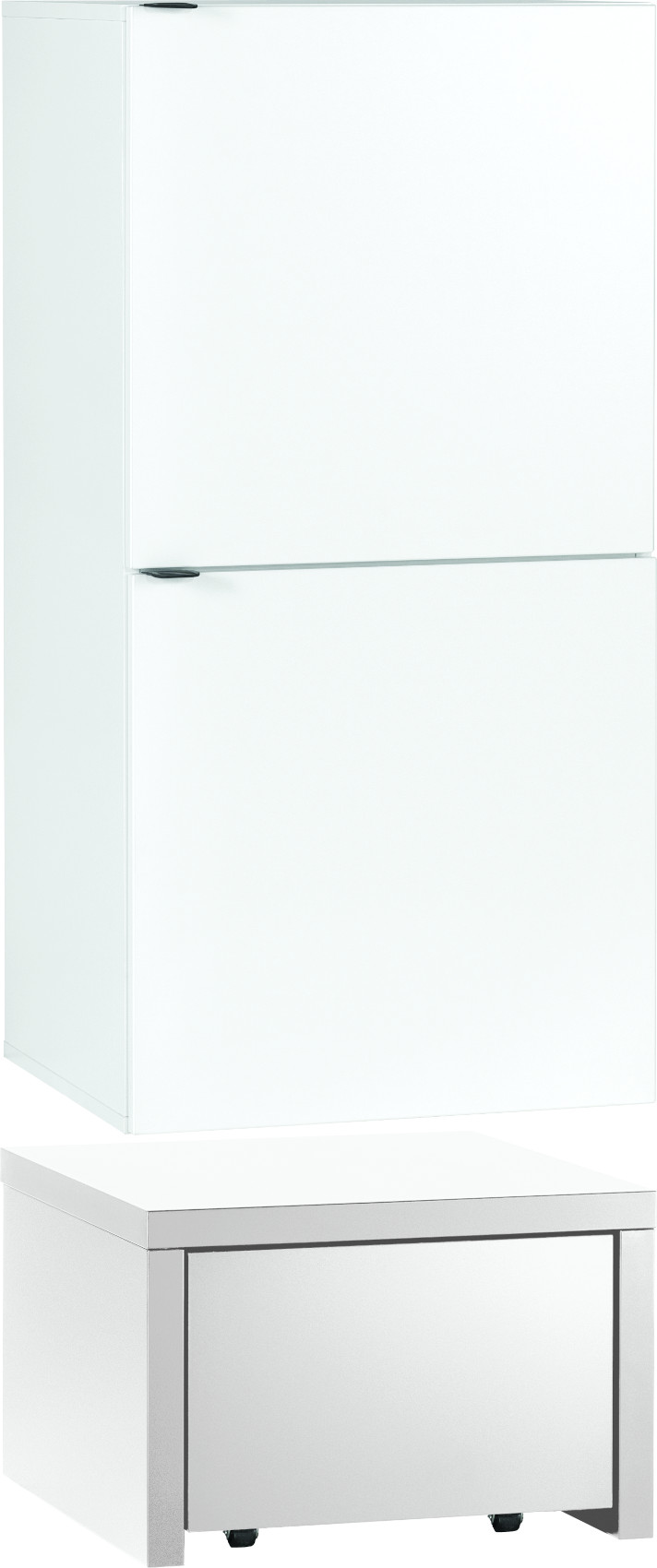V horní části jsou dvířka, za kterými je vložena 1 police s libovolně nastavitelnou výškou. Pod ní jsou 2 zásuvky na kovových pojezdech.