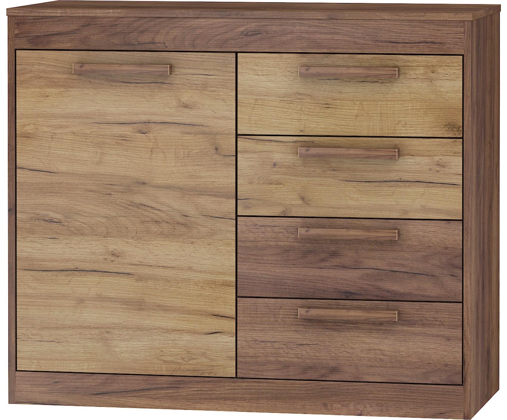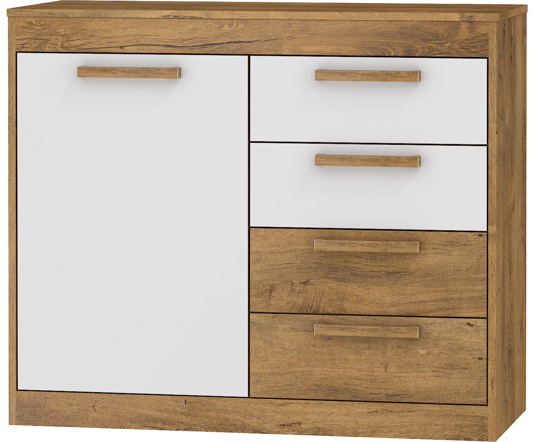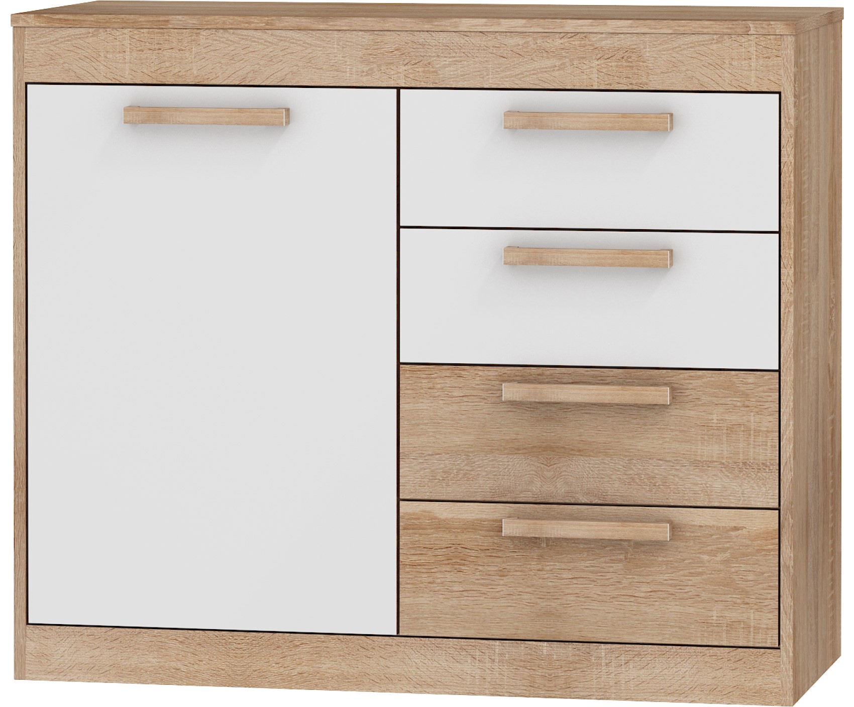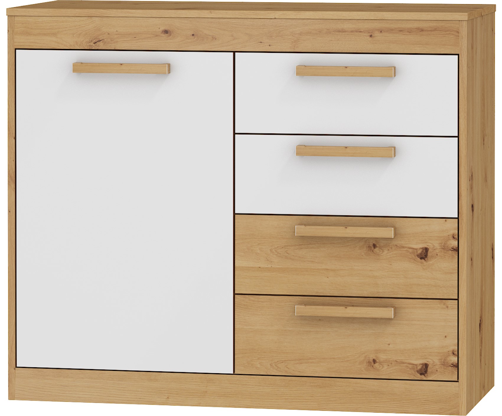 Komoda 1D4S Maximus se skvěle hodí do moderně zařízených interiérů - zejména obývacích pokojů, ložnic, jídelen a pracoven. LTD materiál, o šířce 16 mm a 25 mm, ze kterého se komoda skládá, zajišťuje vysokou a špičkovou kvalitu. Desky mají ABS hranění, které zvyšuje odolnost proti odštípnutí hran. Dvířka i zásuvky jsou vybaveny systémem tichého dovírání. Komodu si můžete vybrat z několika barevných variant. Zajímavý design barev dodává komodě ještě více na luxusu a nadčasovosti.