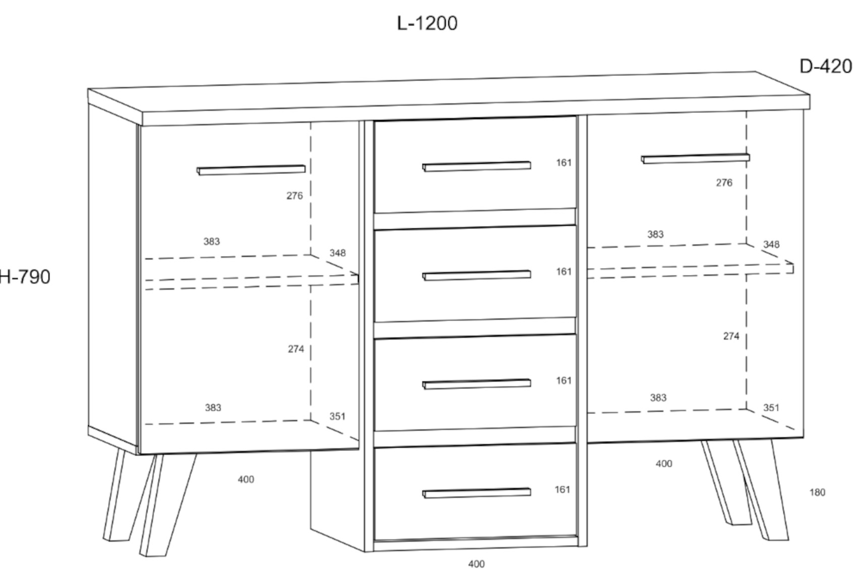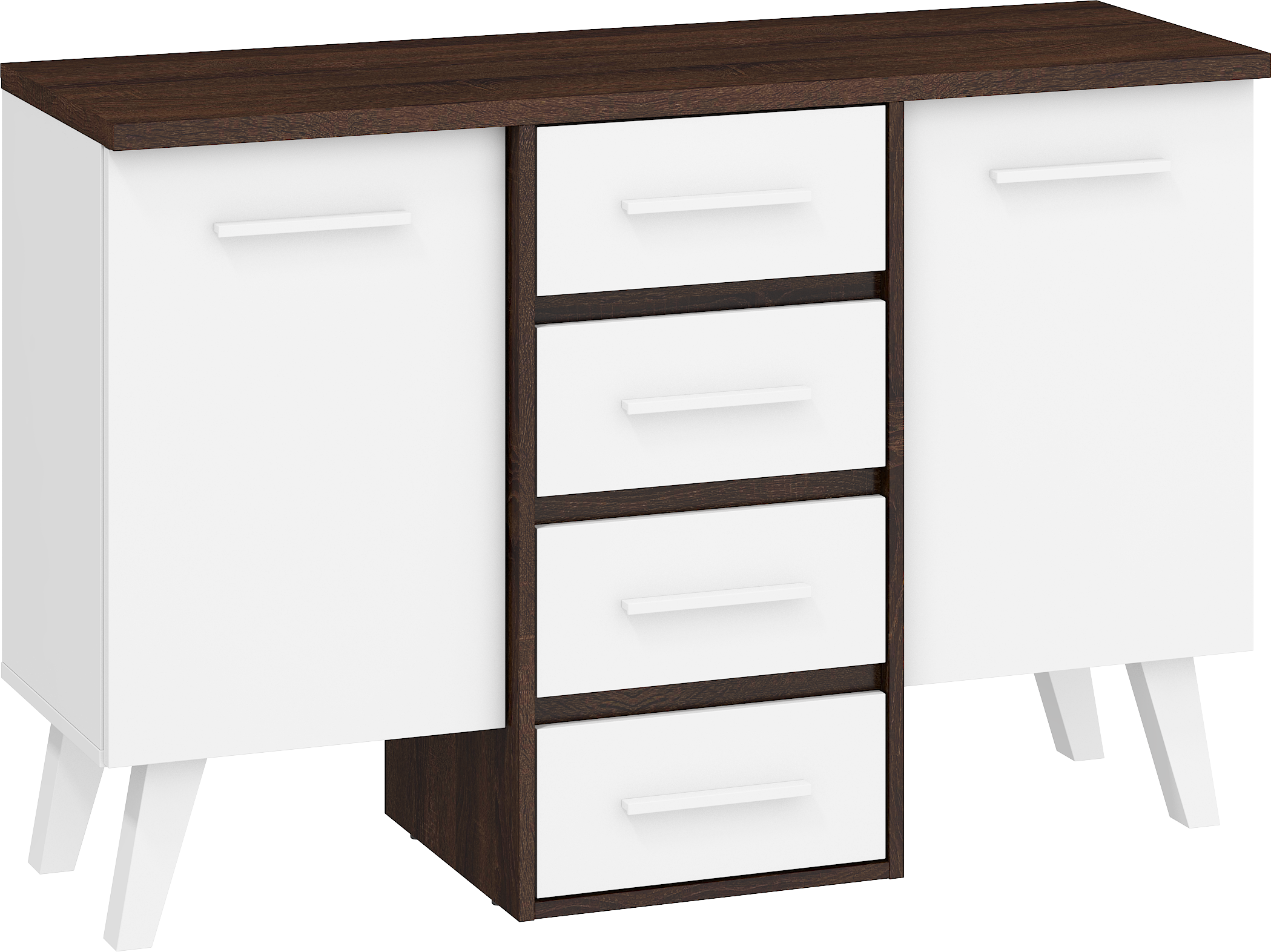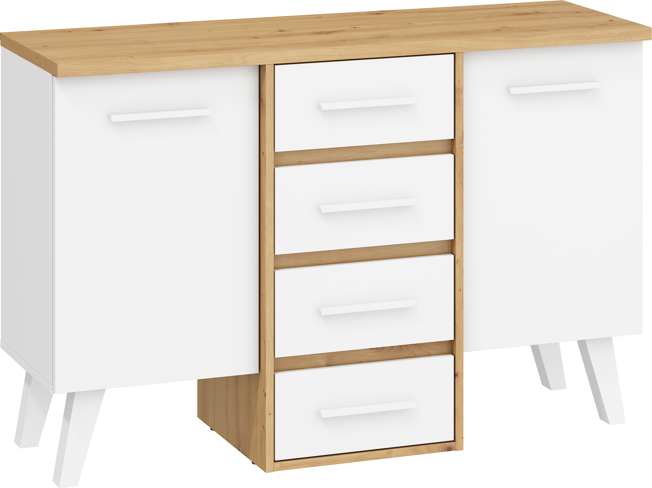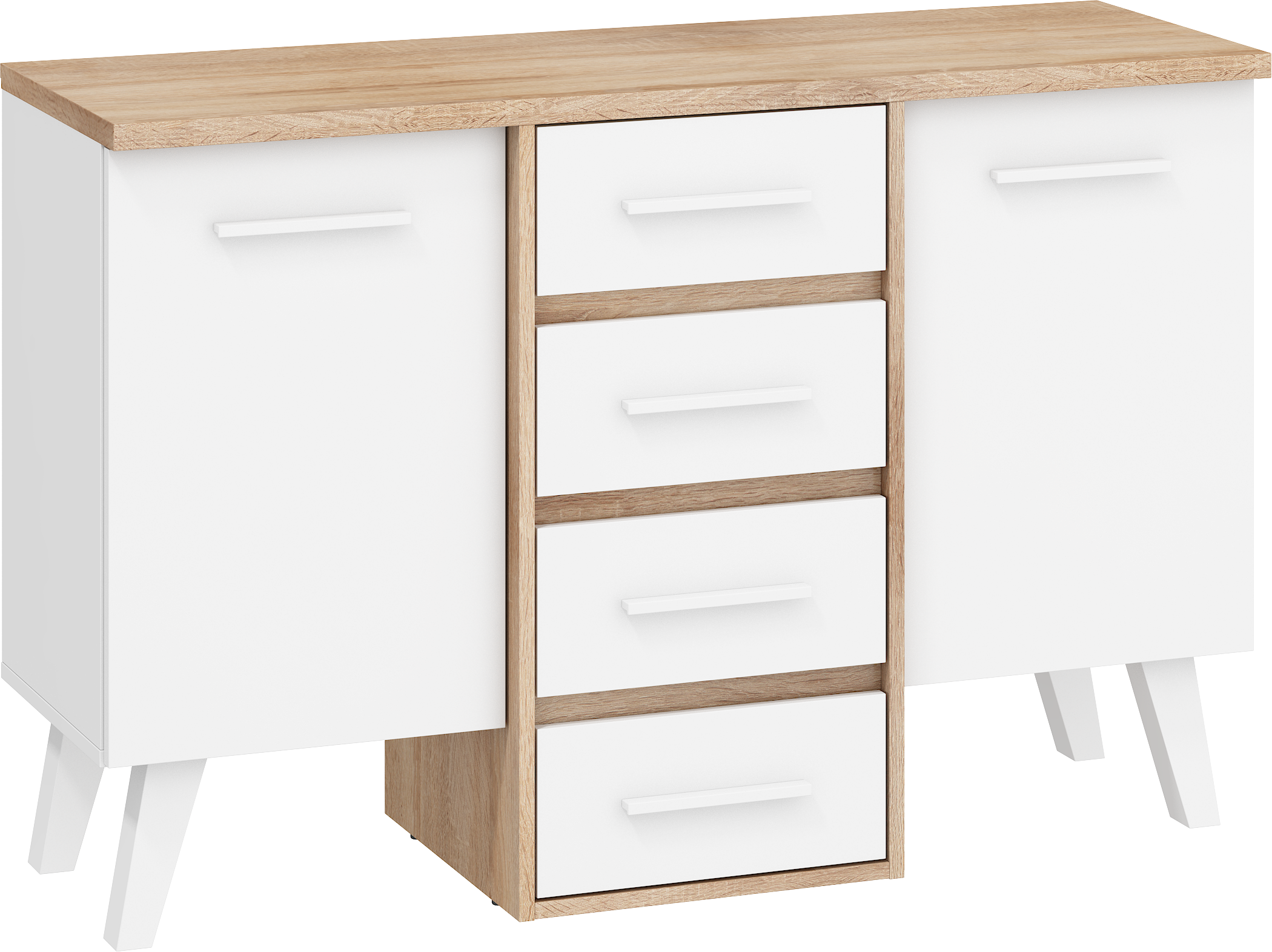 Komoda Nordis 04 stylově doplní vaši domácnost. 4 praktické zásuvky a 2 skříňky s poličkou vám poskytnou dostatek úložného prostoru.