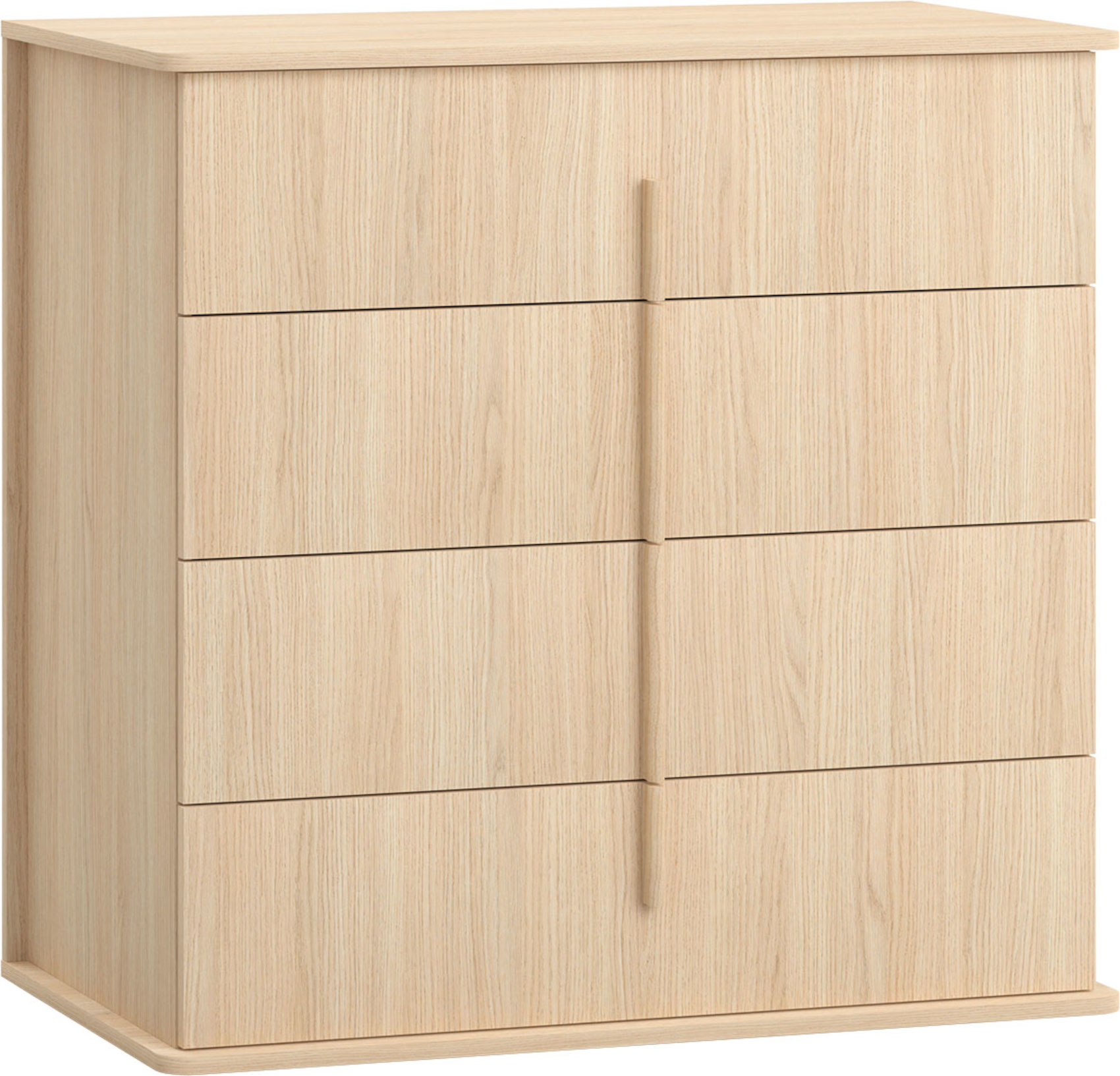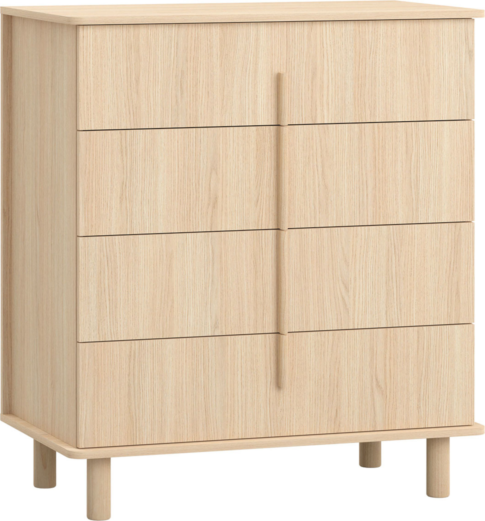 Komoda Omm vás zaujme svým jednoduchým klasickým designem v přírodních odstínech. Je vyrobena z kvalitního udržitelného lamina odolného vůči poškození. Úchytky a nohy jsou z masivního dubového dřeva. Zásuvky mají systém tichého dovírání. Máte možnost si vybrat ze 2 variant - bez nožek nebo s nožkami, které provzdušní váš interiér a zvýší komodu o téměř 14 cm.
