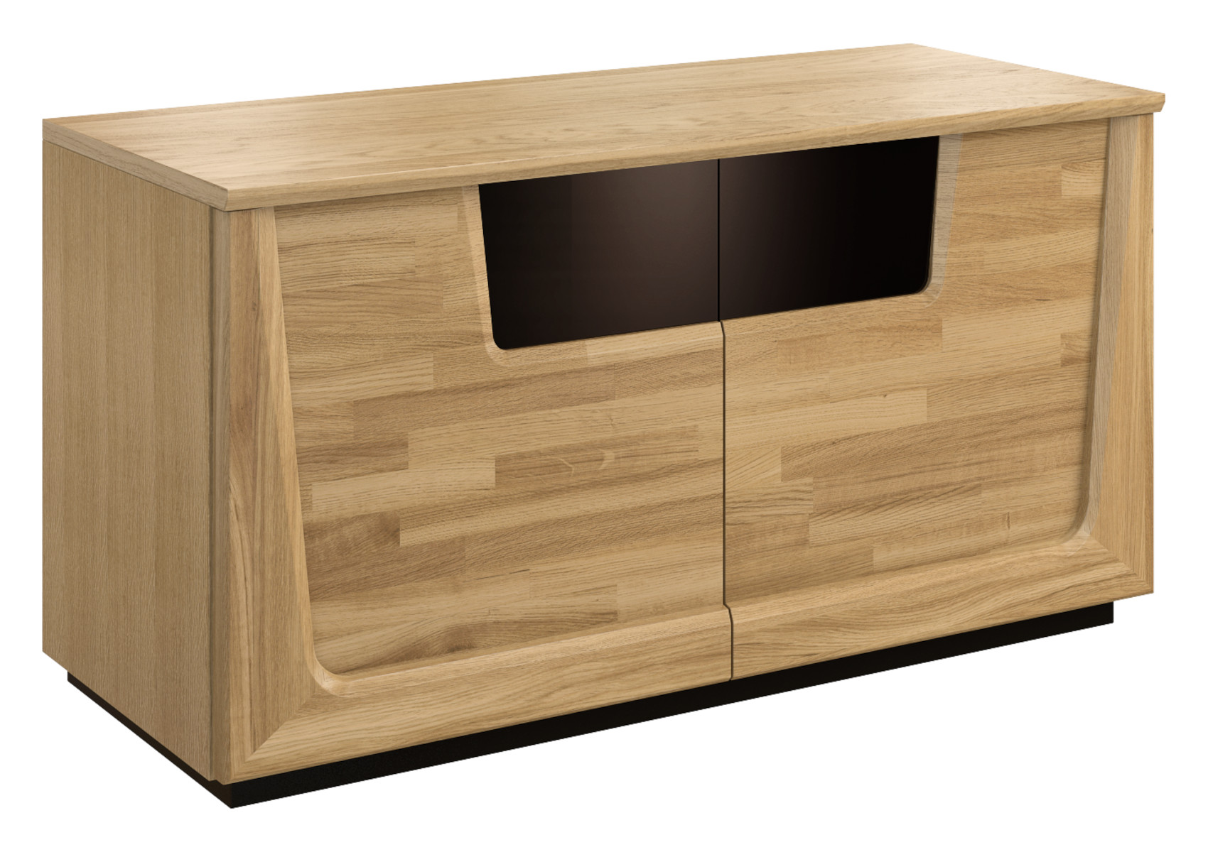 Komoda Maganda 2D vás zaujme svým moderním a luxusním designem. Je vyrobena z masivního dubového dřeva s černými detaily ze skla Lacobel. Vzhledem k použitému materiálu se jedná o stabilní nábytek. Kvalitní technologie lakování a moření dodává nábytku přírodní vzhled a zvýrazňuje jeho léta. Máte možnost si vybrat ze 2 barevných variací moření dřeva.