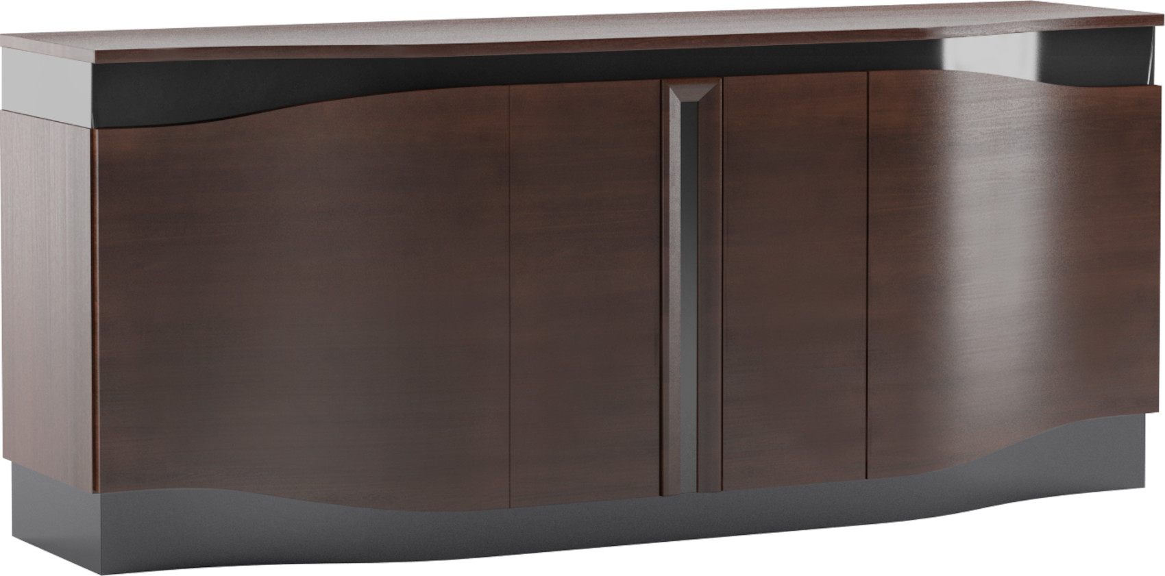 Komoda Diuna 4D vás zaujme svým moderním a elegantním designem. Jedinečným prvkem jsou dvířka ve tvaru vlny. Komoda je vyrobena z masivu a masivní třešňové dýhy s černými lakovanými detaily. Kvalitní lakování a moření dodává nábytku přirozený vzhled a zvýrazňuje jeho strukturu lét. Systémový nábytek Diuna má jednouchý dotykový systém otevírání dvířek - Push to open.