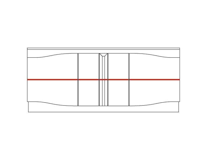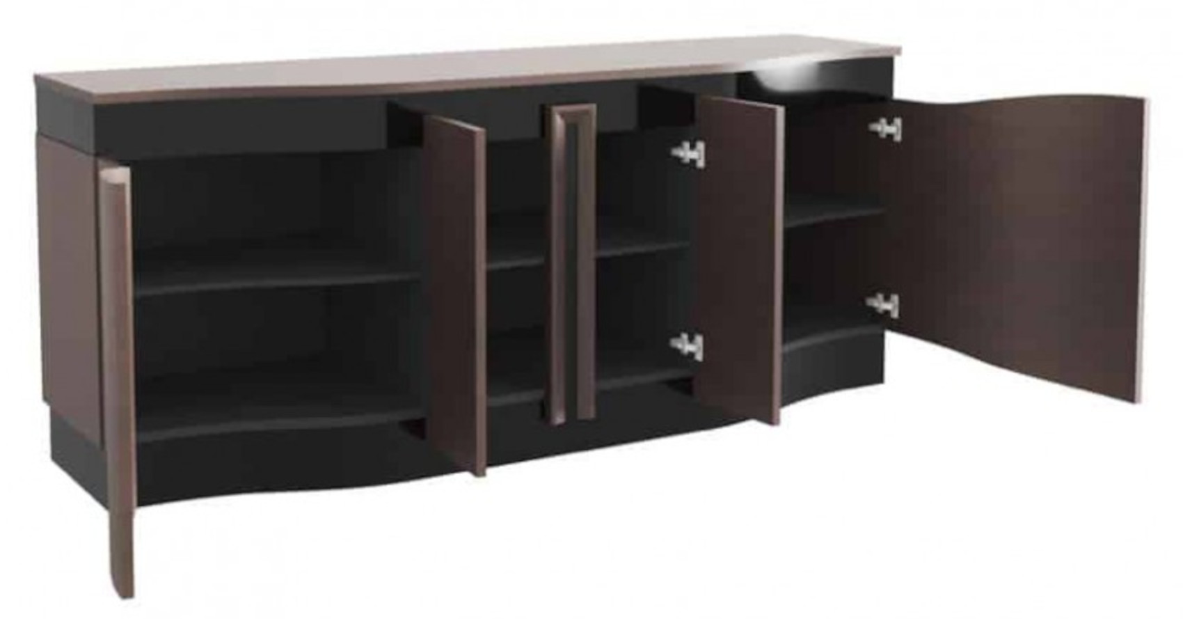 Komoda má 4 plná dvířka, za kterými jsou vloženy 3 lakované police.
