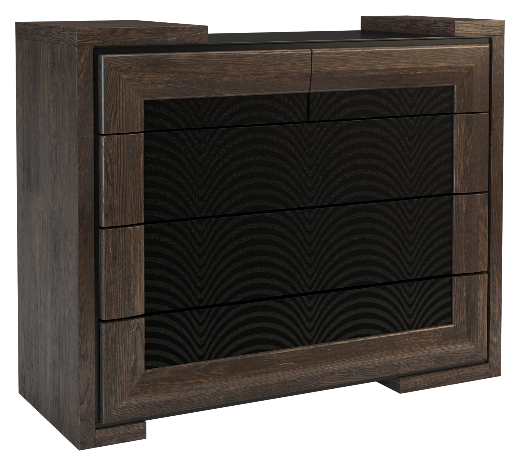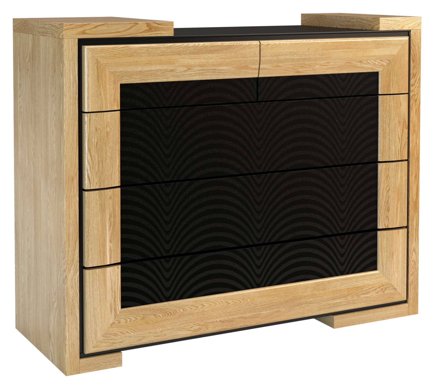 Komoda Corino 5SZ vás zaujme moderním a luxusním designem. Systémový nábytek Corino je jedinečný svými přesnými geometrickými tvary, černým ohraničením a hodní deskou ze skla Lacobel. Komoda je vyrobena z masivního dubové dřeva. Díky kvalitnímu lakování a moření má nábytek přírodní vzhled masivního dřeva a jsou viditelné struktury lét. Máte na výběr ze 2 barevných variant.