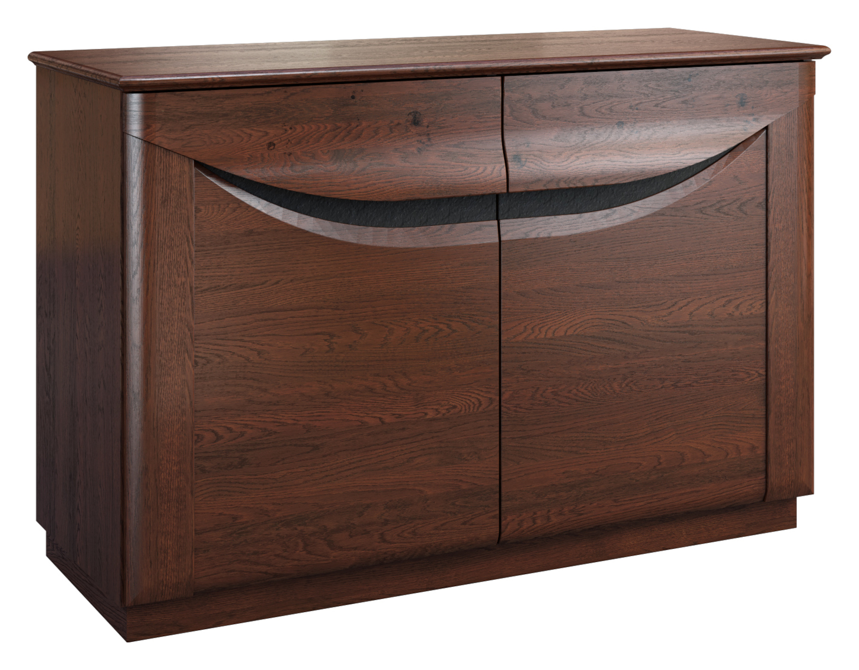 Komoda Bari vysoká 2D vás zaujme svým elegantním designem. Je vyrobena z masivního dubového dřeva a přírodní dubové dýhy. Kvalitní lakování a moření dodává nábytku přírodní vzhled dřeva a zvýrazňuje strukturu lét. Jedinečným prvkem celé kolekce jsou vyřezávané dekorační prvky na dvířkách v 5 odstínech - burgundský dub, beton, rez, černá (magma) a ocel.