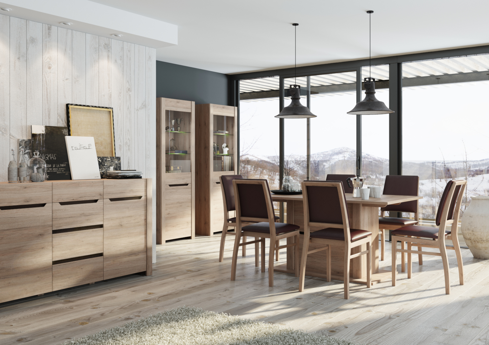 Komoda Desjo 04 vás zaujme svým klasickým designem. Je vyrobena z MDF dřevotřísky s tenkou vrstvou masivního dřeva potaženého fólií, která navodí dojem přírodního dřeva.