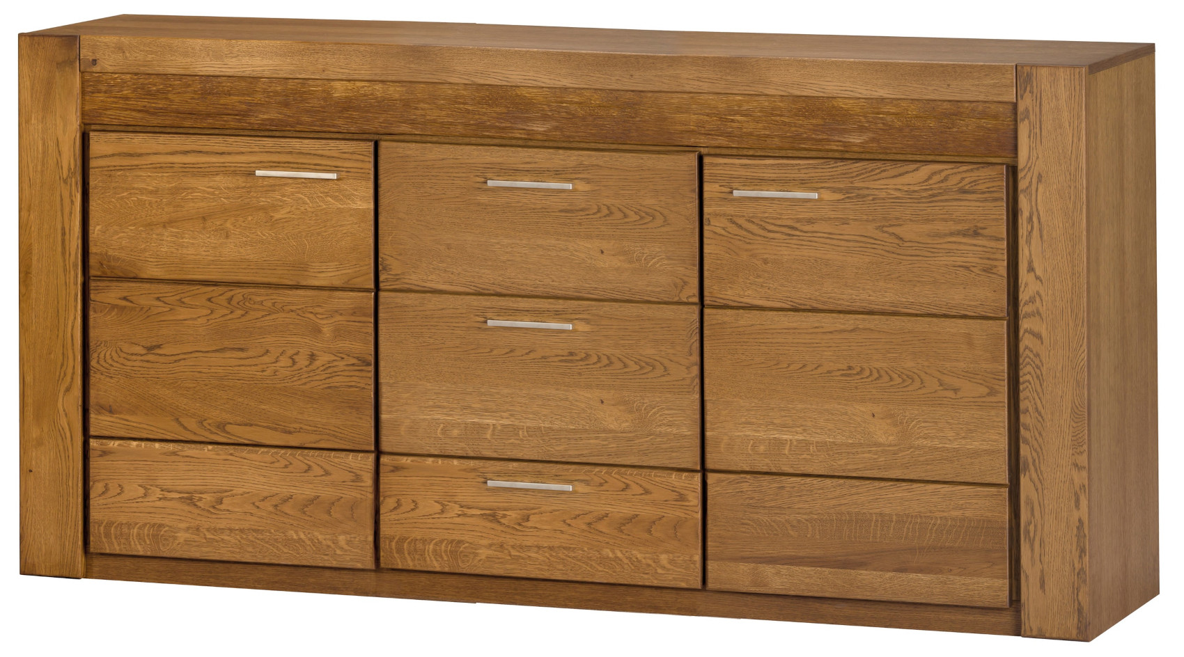 Moderní komoda Velvet 47 vás zaujme svým elegantním a přírodním designem s viditelnou strukturou dřevěných lét. Přední část komody je vyrobena z masivního dubového dřeva a korpus z přírodní dubové dýhy. Veškerá dvířka i zásuvky mají kovové úchyty. Jedinečným prvkem je LED osvětlení pod horní deskou, které dodá nábytku nádech luxusu.