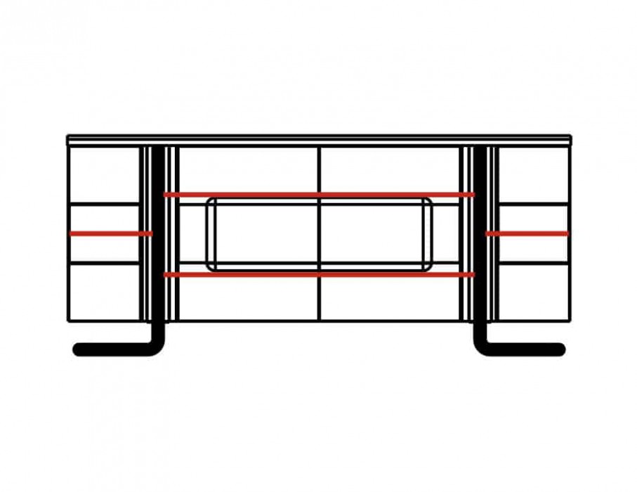 Ve vnitřním prostoru komody jsou 4 lakované police.