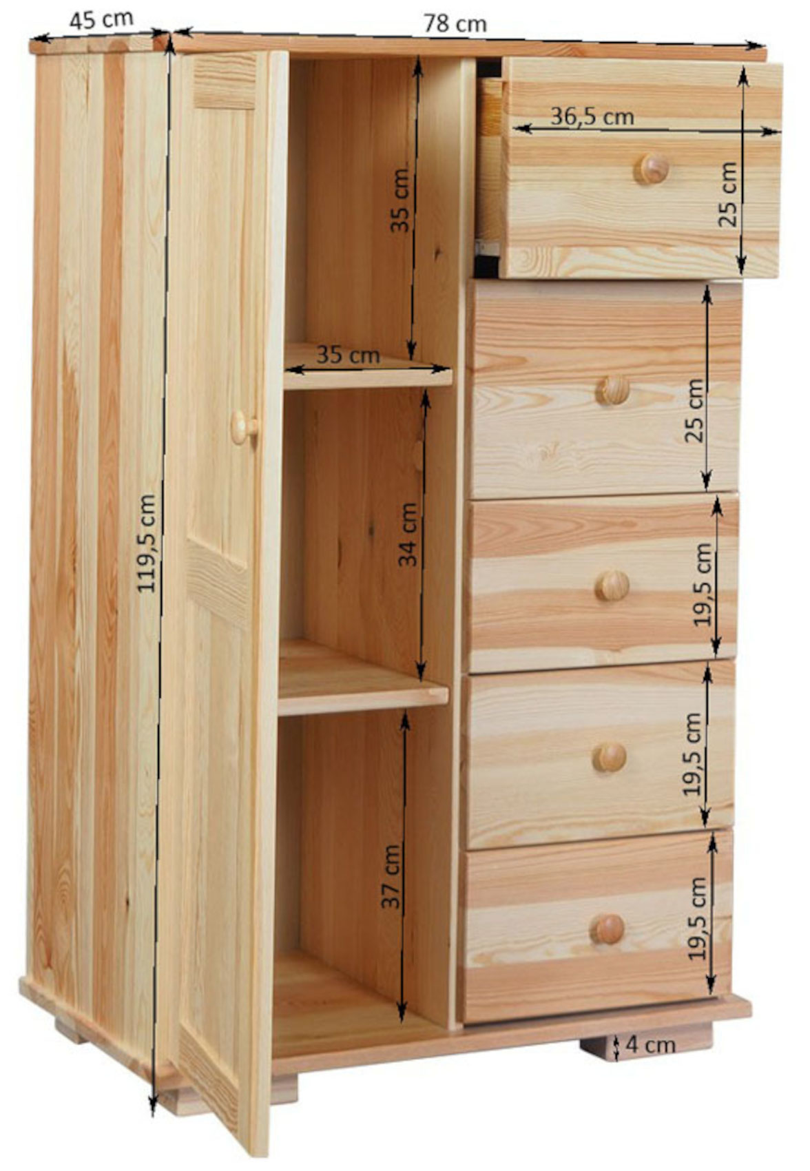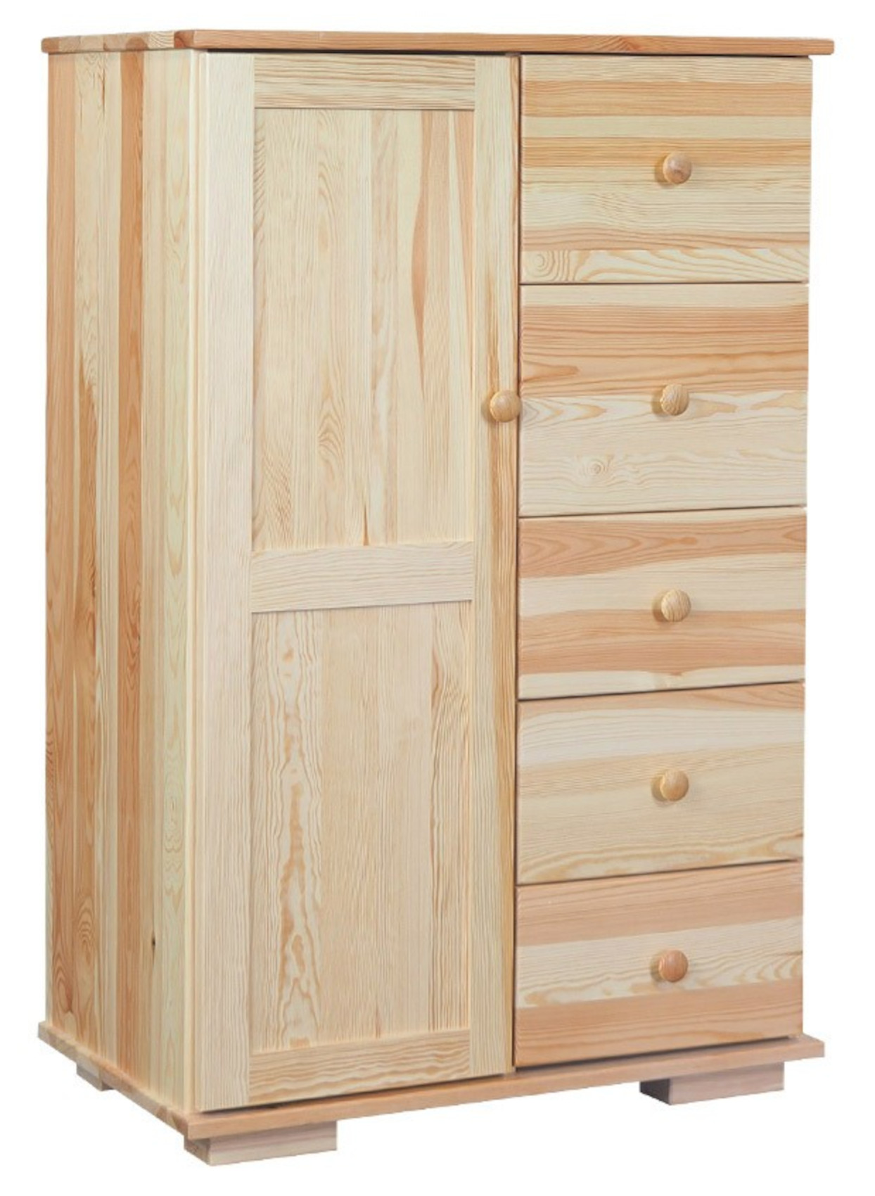 Skříňka Modern I vás zaujme svým jednoduchým přírodním designem s viditelnou strukturou dřevěných lét. Je vyrobena z masivního borovicového dřeva, které vám zaručí kvalitu, odolnost a stabilitu. Součástí jsou dřevěné úchyty ve tvaru knoflíku. Skříňka stojí na nízkých nožkách, které dodají nádech elegance. Na výběr máte z několika odstínu moření dřeva.