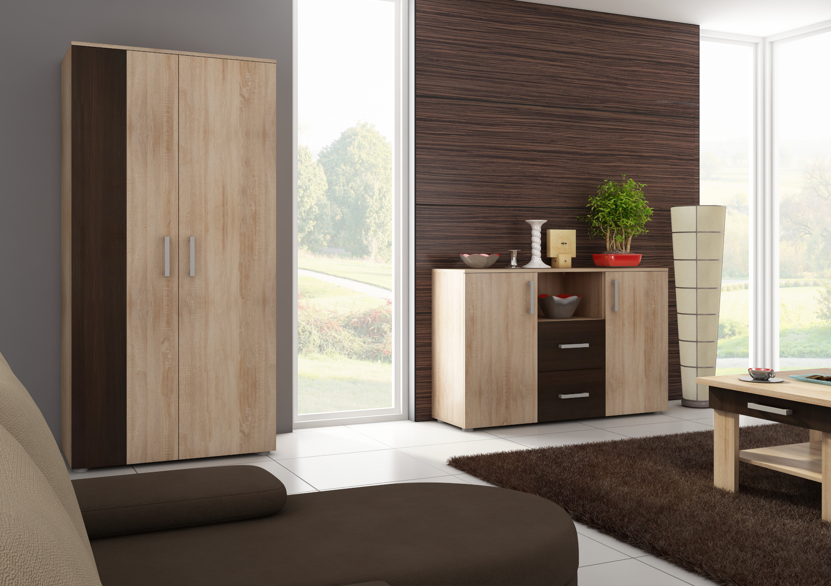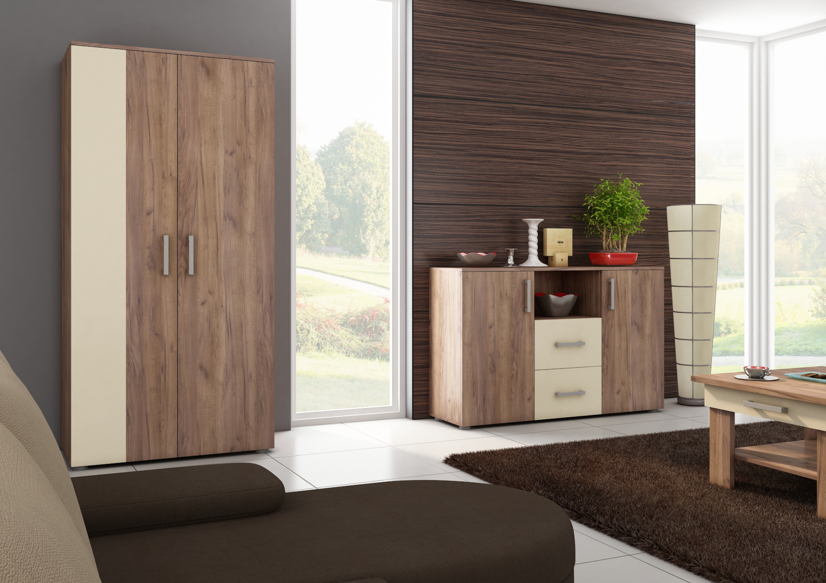 Police Stella 02 se skvěle hodí do moderně zařízených interiérů. Zaujme vás svým moderním designem s přírodními prvky. Je vyrobena z kvalitních lamino desek o síle 16 mm. Nabízíme vám několik barevných variant. Zajímavá kombinace barev dodává komodě ještě více na luxusu a nadčasovosti. Jednotlivé díly jsou variabilní, lze je navzájem kombinovat a vytvořit si tak svůj vysněný obývací pokoj.