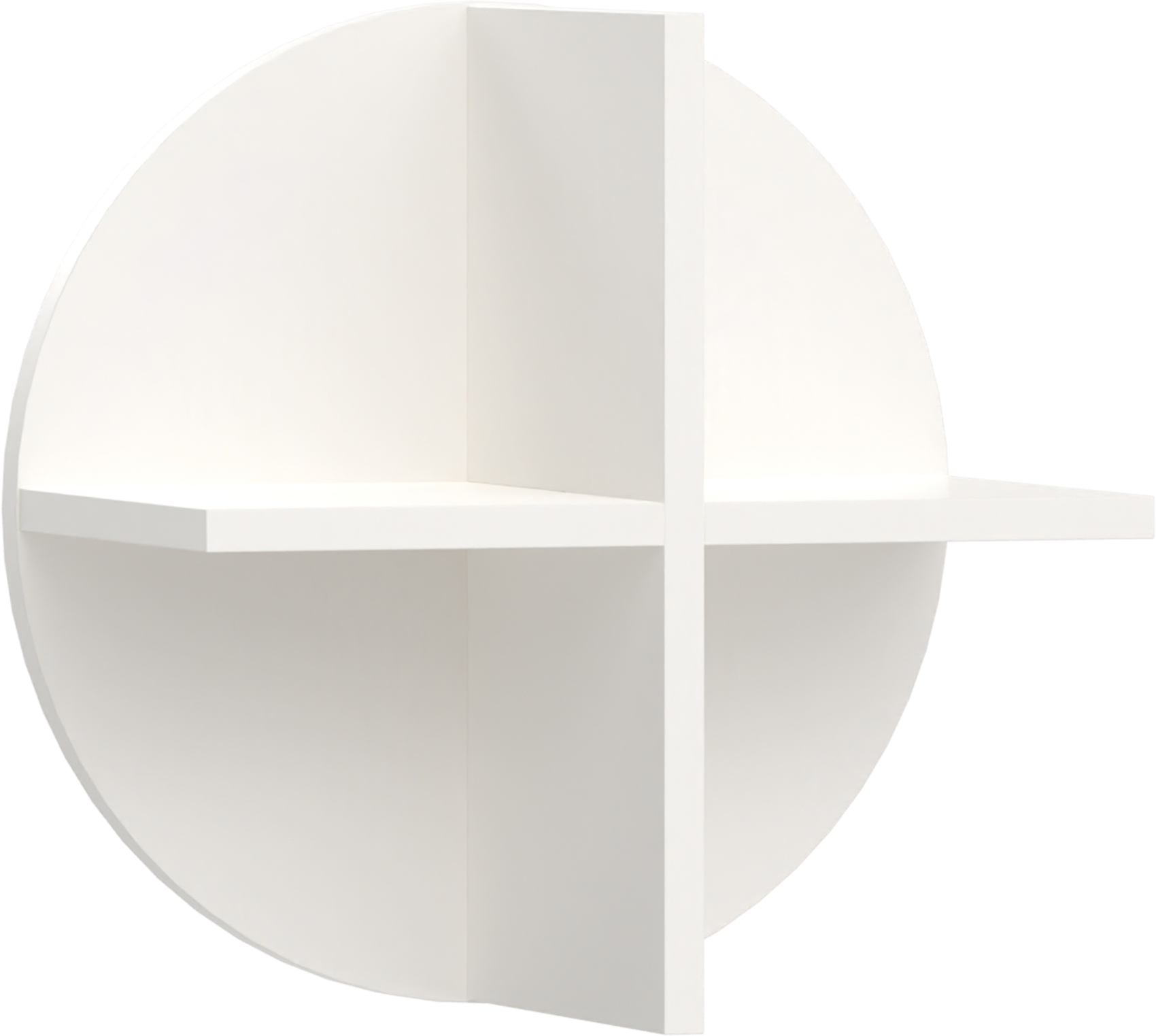Kulatá police Reli vás zaujme svým jedinečným moderním designem v alabastrově bílém odstínu. Je vyrobena z kvalitního lamina o síle 16 mm, která vám zaručí odolnost vůči poškození.