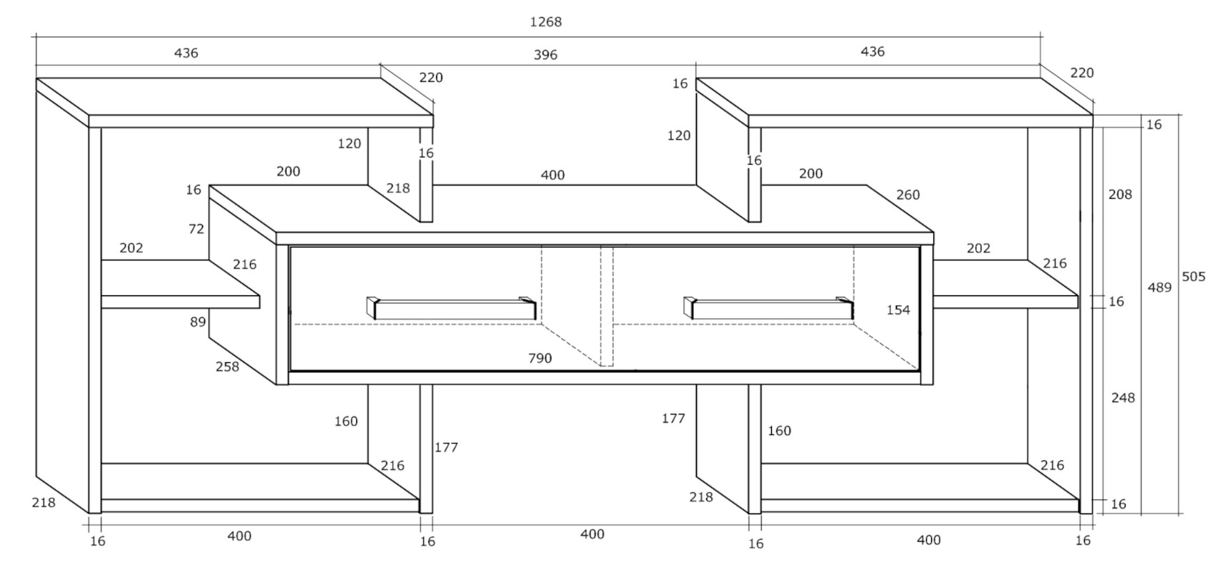 Součástí je několik otevřených nik k vystavení vašich oblíbených dekorací. Uprostřed jsou 1 dvířka.