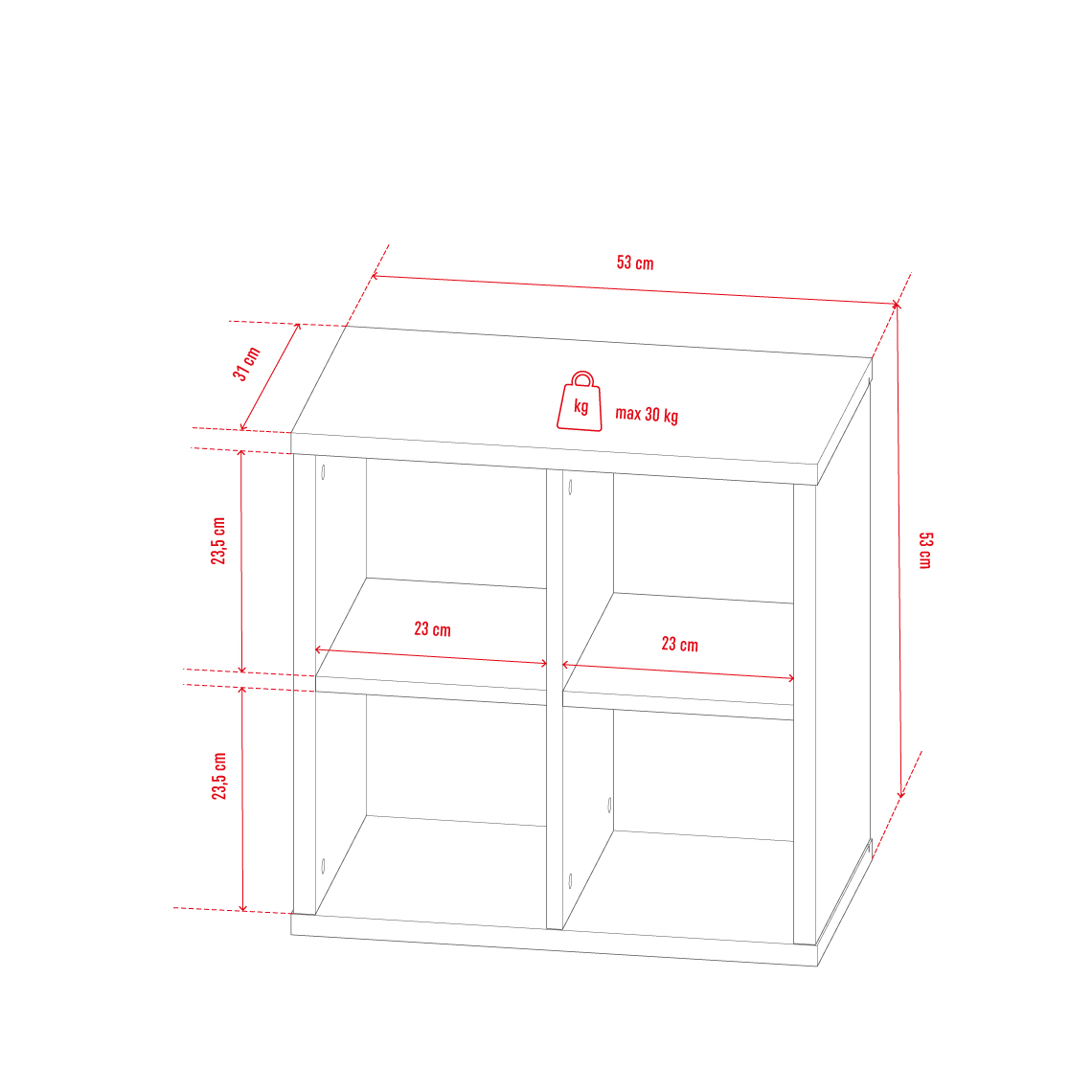 Součástí police jsou 3 menší niky, do kterých si můžete vystavit své oblíbené dekorace nebo rámečky s fotografiemi.