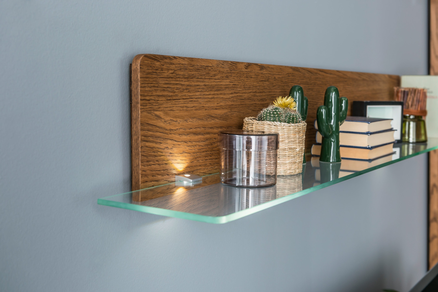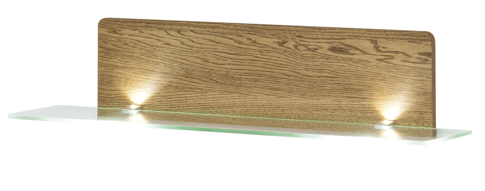 Moderní police Montenegro 34 vás zaujme svým elegantní designem. Je vyrobena z masivního dubové dřeva, přírodní dubové dýhy a skla.