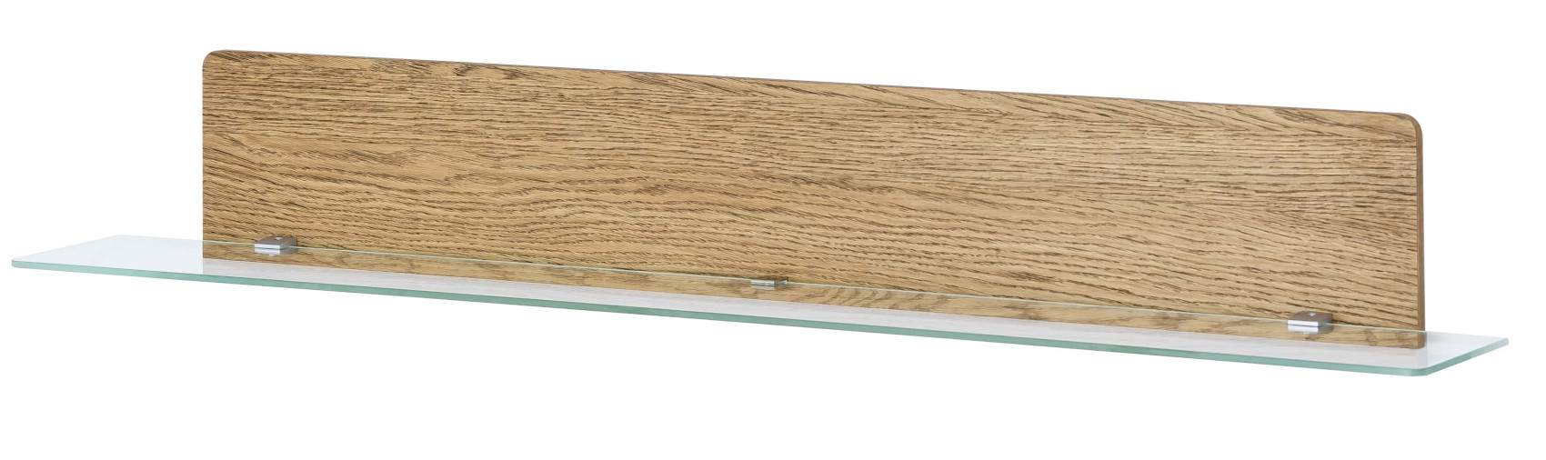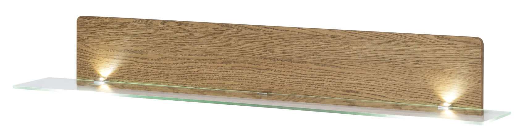 Moderní police Montenegro 35 vás zaujme svým elegantní designem. Je vyrobena z masivního dubové dřeva, přírodní dubové dýhy a skla.