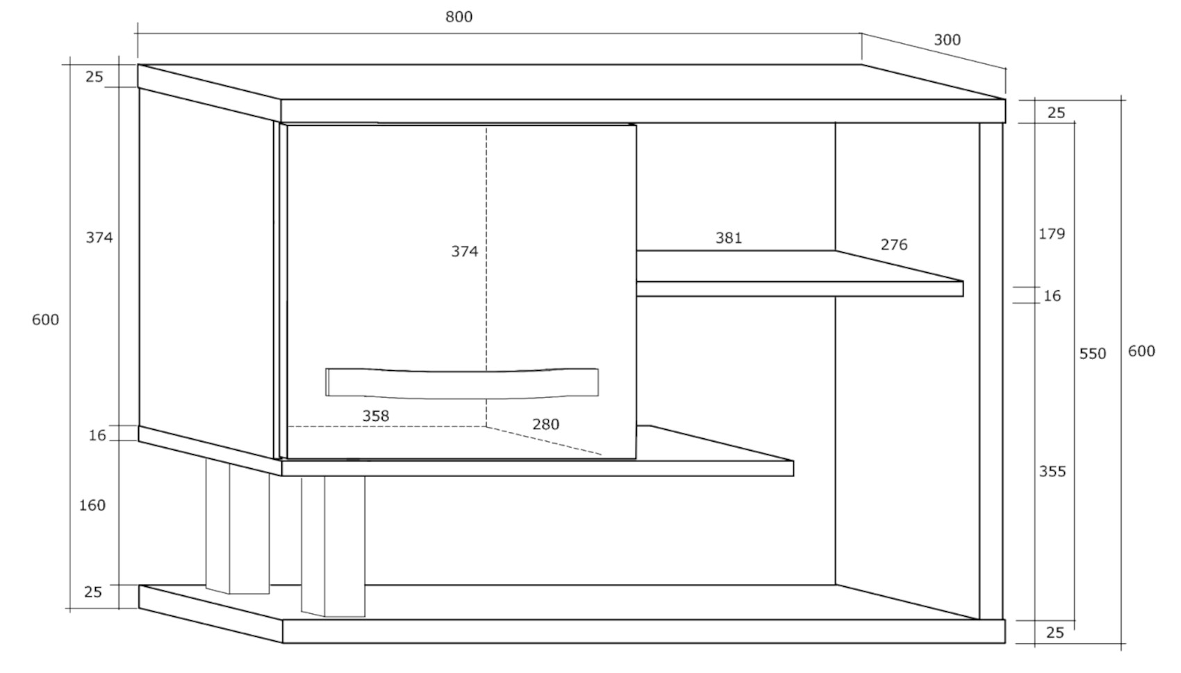 Součástí jsou 1 dvířka na levé straně. V pravé části je několik otevřených nik k vystavení vašich oblíbených knih, dekorací či rámečků s fotografiemi.