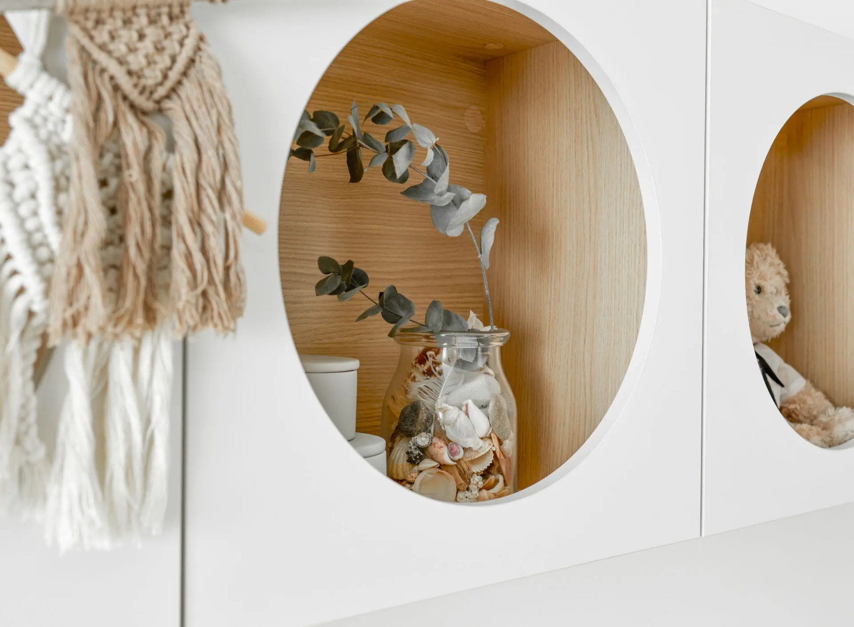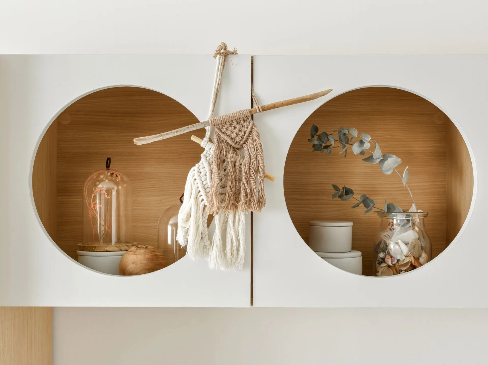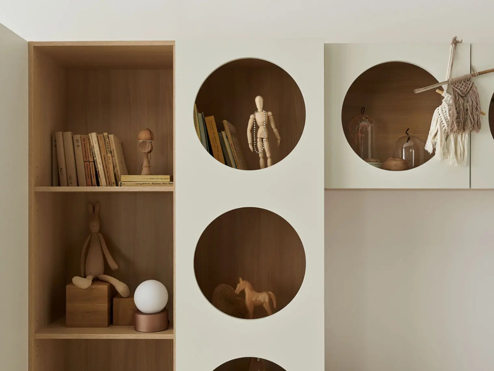 Součástí jsou 2 dvířka s kulatými otvory, za kterými jsou 2 niky. Ty můžete doplnit doplňkovými policemi Reli a výplní Reli, díky kterým udržíte ve skříňce pořádek.