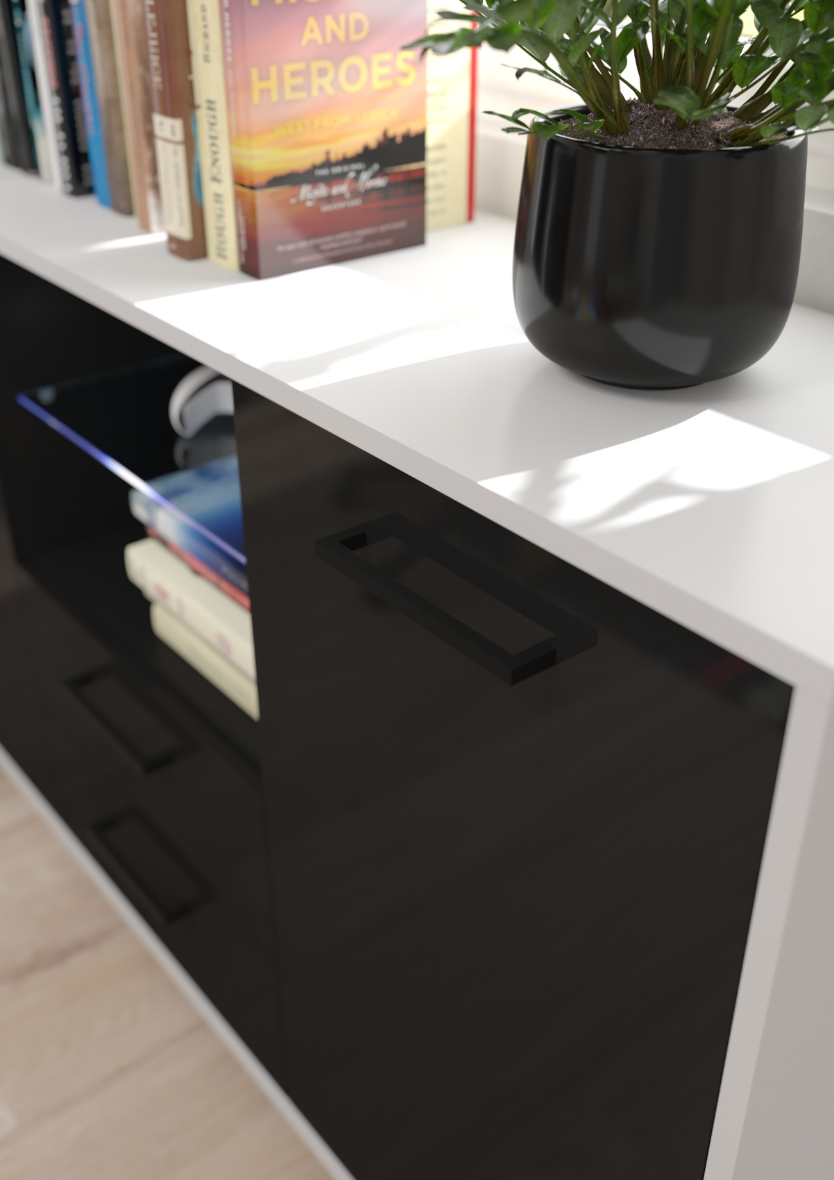 Součástí stolku jsou 2 dvířka. Pod horní deskou je otevřená nika k uložení knih, dálkového ovládání, časopisů nebo jiných nezbytností.