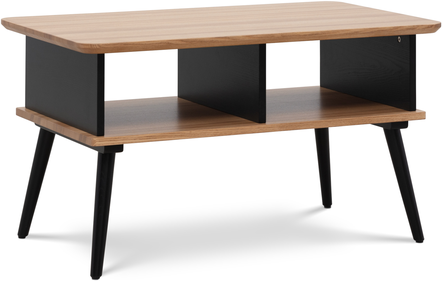 Moderní konferenční stolek D100 vás zaujme svým luxusním designem v přírodním odstínu v kombinaci s černou barvou. Je vyroben z masivního jasanového dřeva, které vám zaručí kvalitu, odolnost a stabilitu.