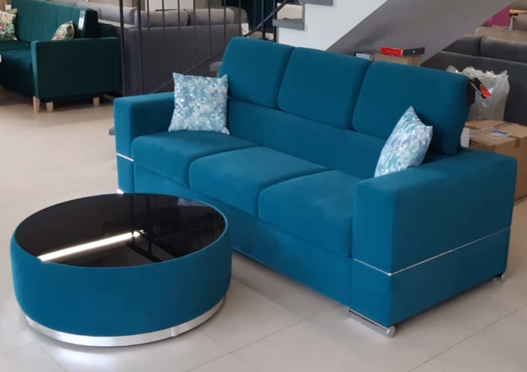 Moderní konferenční stolek Destiny vás zaujme svým luxusním designem s prvky elegance. Chromové lišty podél obvodu dodají nábytku jedinečný vzhled. Skelet je vyroben z masivního bukového dřeva v kombinaci s nábytkovou překližkou. Kovová konstrukce s ocelovou výztuží vám zaručí kvalitu, stabilitu a dlouhou životnost. Stolek je očalouněna potahovou látkou, kůží nebo ekokůží - je pouze na vás, jaký typ si vyberete a horní deska je z černého skla Lacobel.