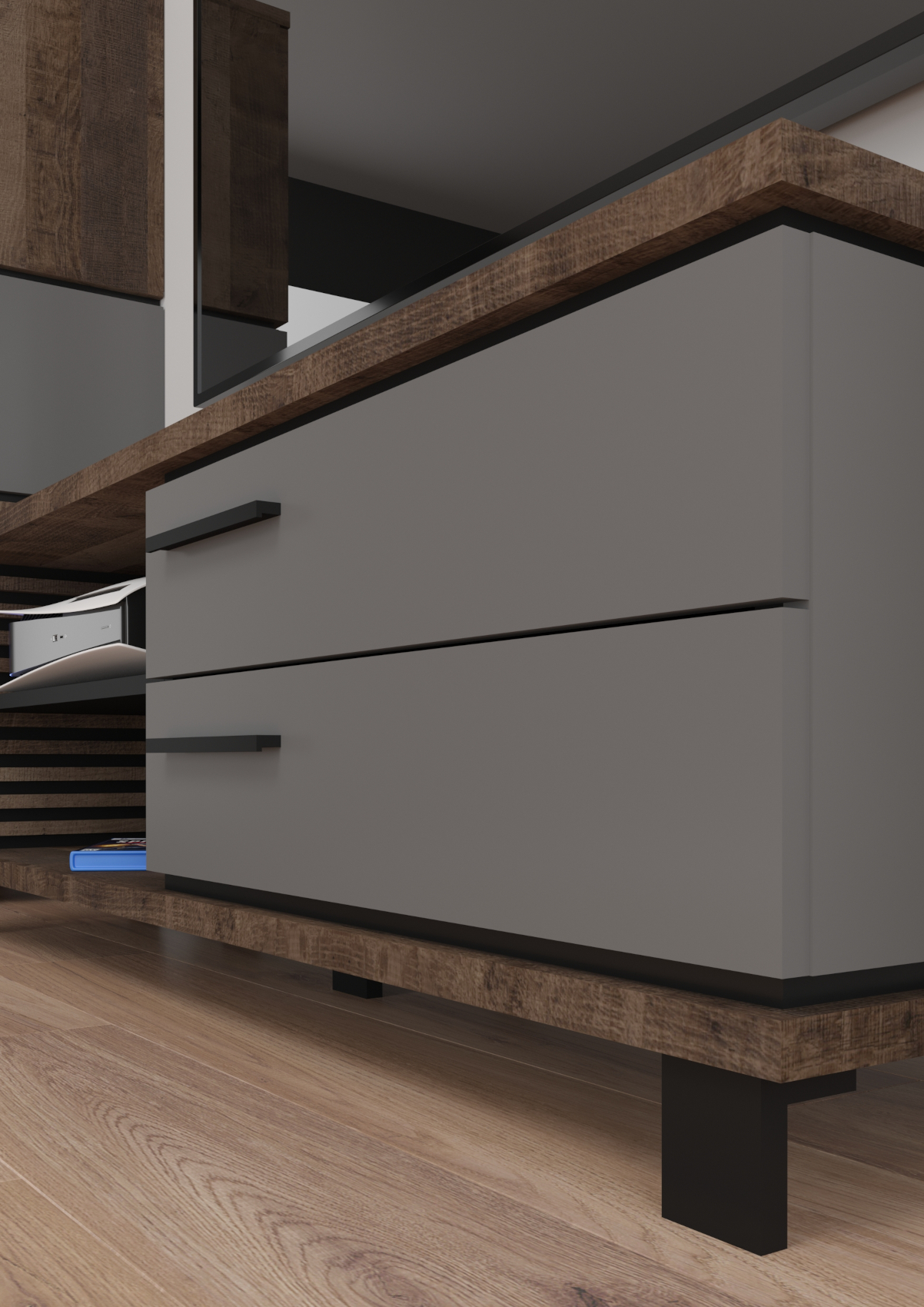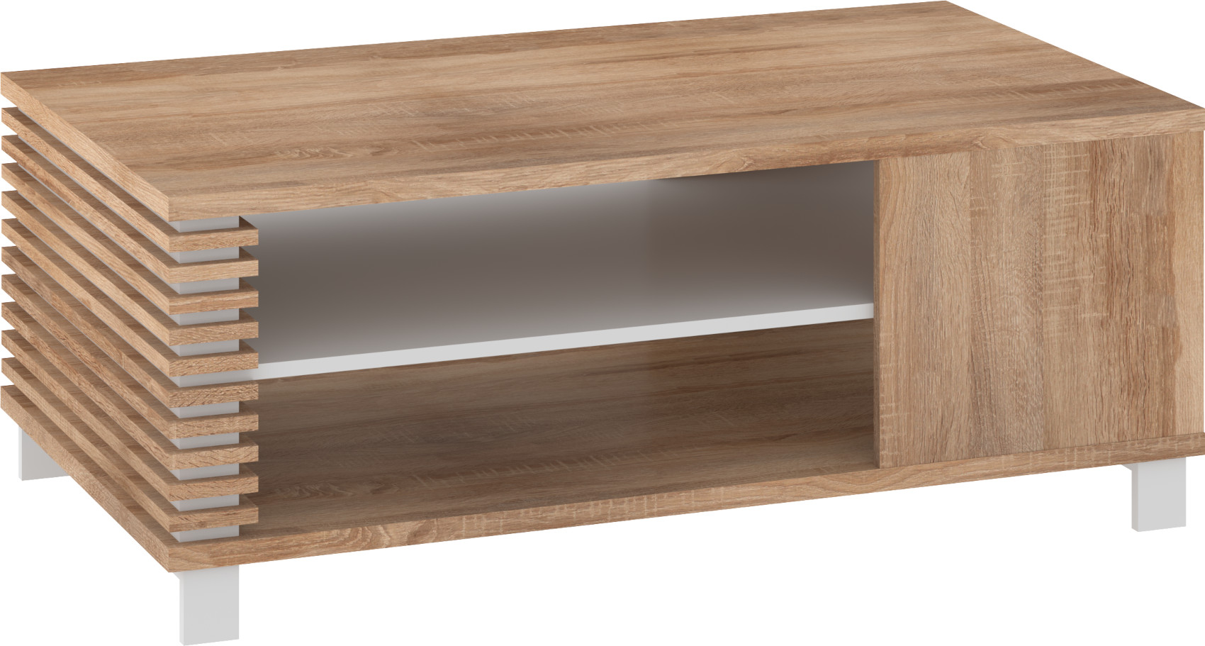 Konferenční stolek Lamir vás zaujme svým moderním elegantním designem s luxusními přírodními detaily. Je vyroben z kvalitních lamino desek o síle 16 mm a 25 mm. Desky mají ABS hranění, které zvyšuje odolnost pro odštípnutí hran. Součástí zásuvek a dvířek jsou jednoduché kovové úchyty a zároveň mají zabudovaný systém tichého dovírání. Nábytek stojí na 8 cm nožkách, které provzdušní váš interiér. Nabízíme vám několik barevných variant.