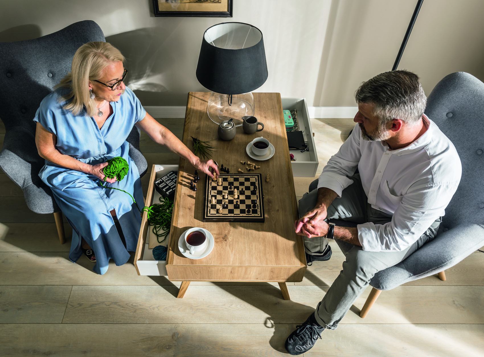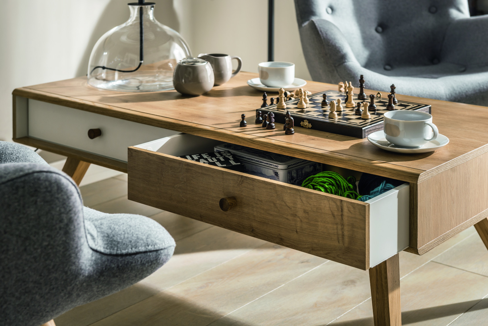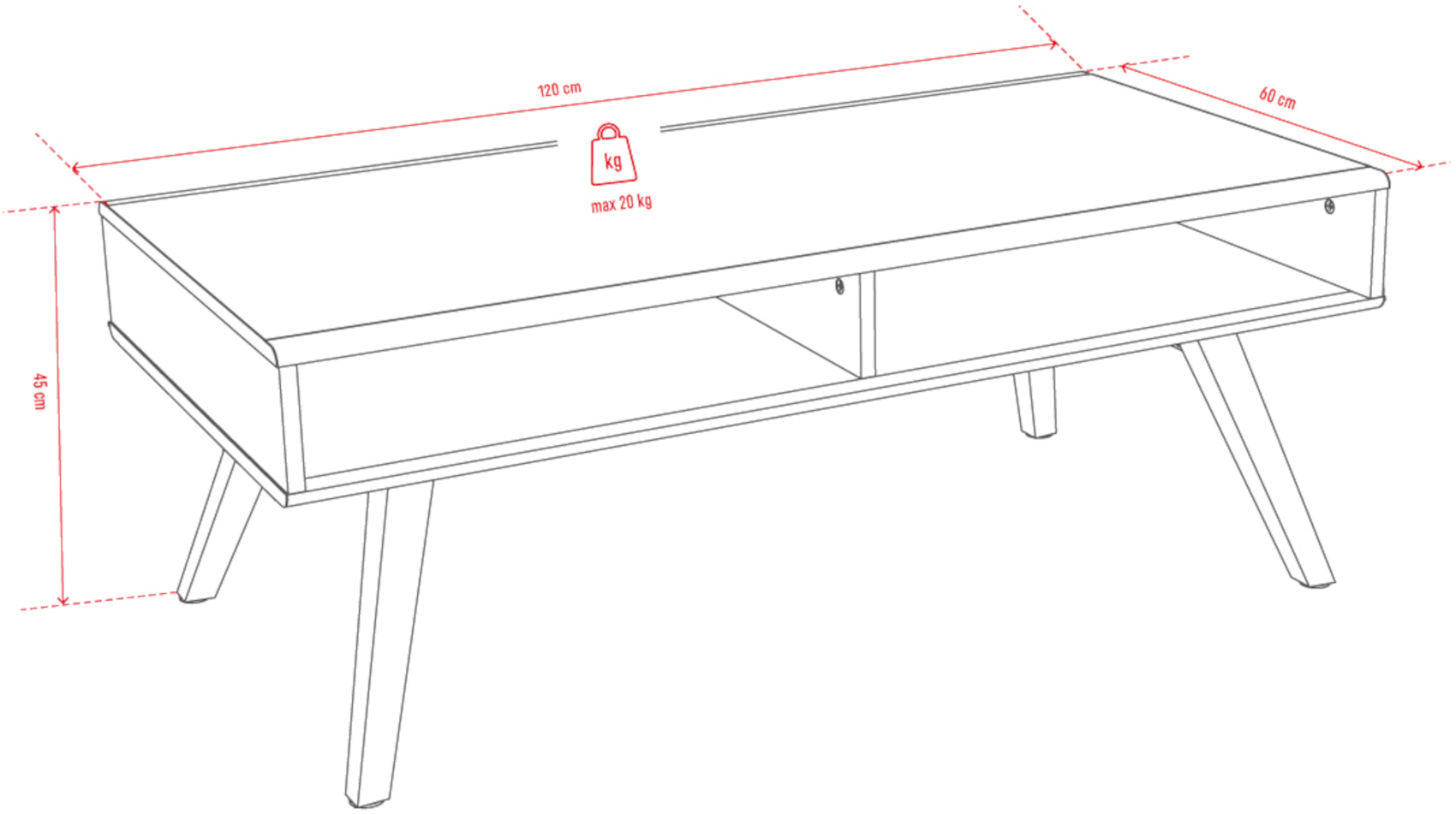 Pod horní deskou jsou 2 otevřené niky k uložení časopisu, knihy nebo dálkového ovládání. Můžete si ale dokoupit zásuvku Nature do konferenčního stolku.