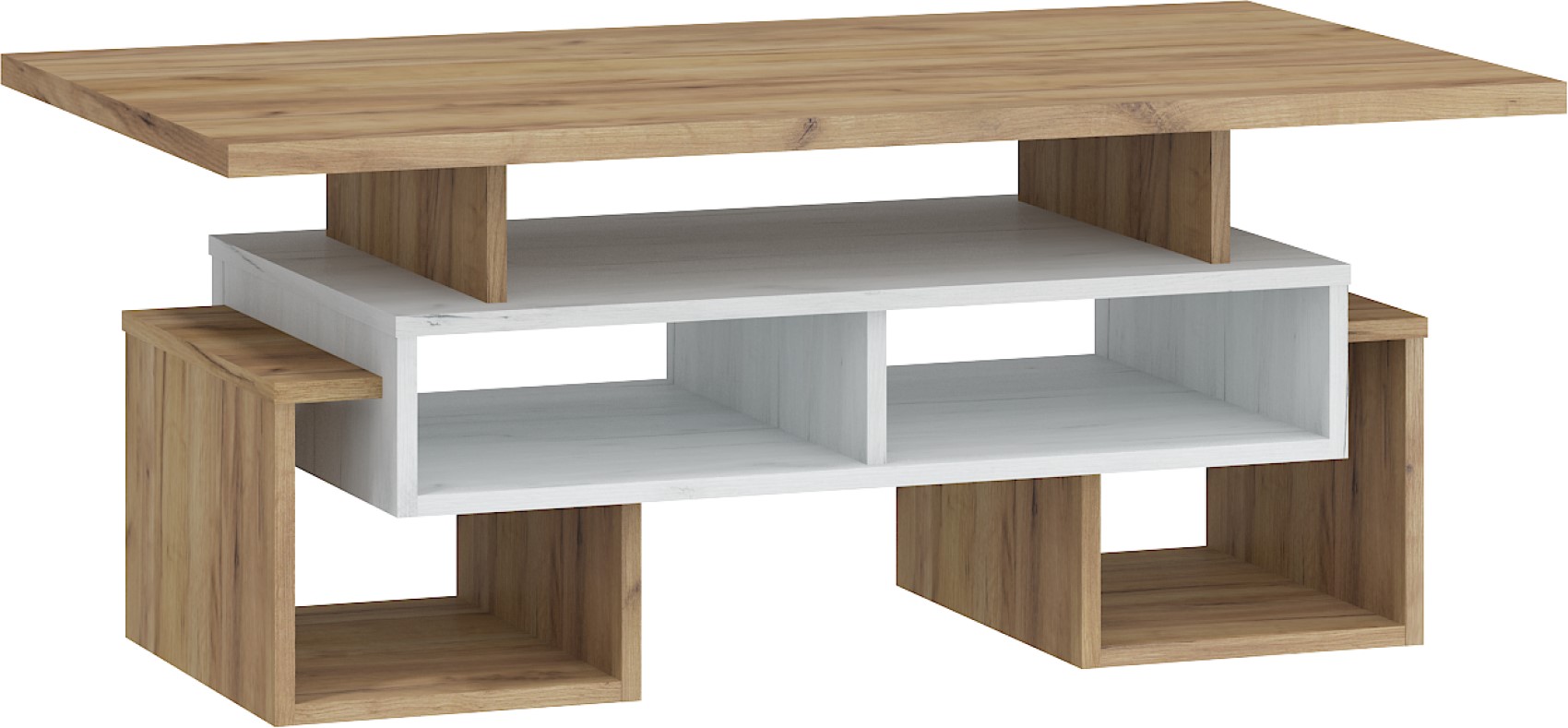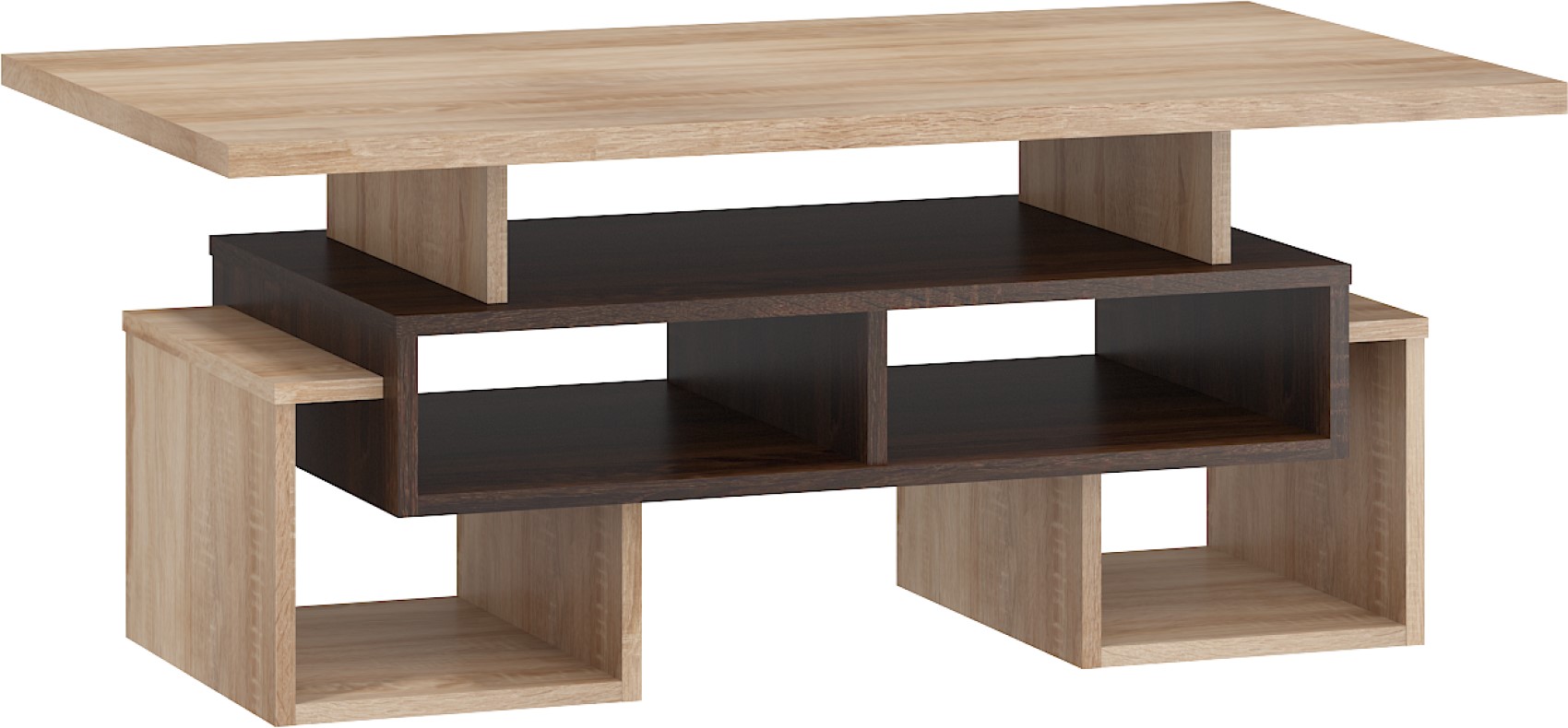 Konferenční stolek S Rio 12 se skvěle hodí do moderně zařízených interiérů zejména předsíní. Zaujme vás svým neobvyklým avšak moderním designem a přírodním provedením. Je vyroben z kvalitních lamino desek o síle 16 mm a 25 mm. Desky mají ABS hranění, které zvyšuje odolnost pro odštípnutí hran. Nabízíme vám několik barevných variant. Zajímavý design barev dodává stolku ještě více na luxusu a nadčasovosti.